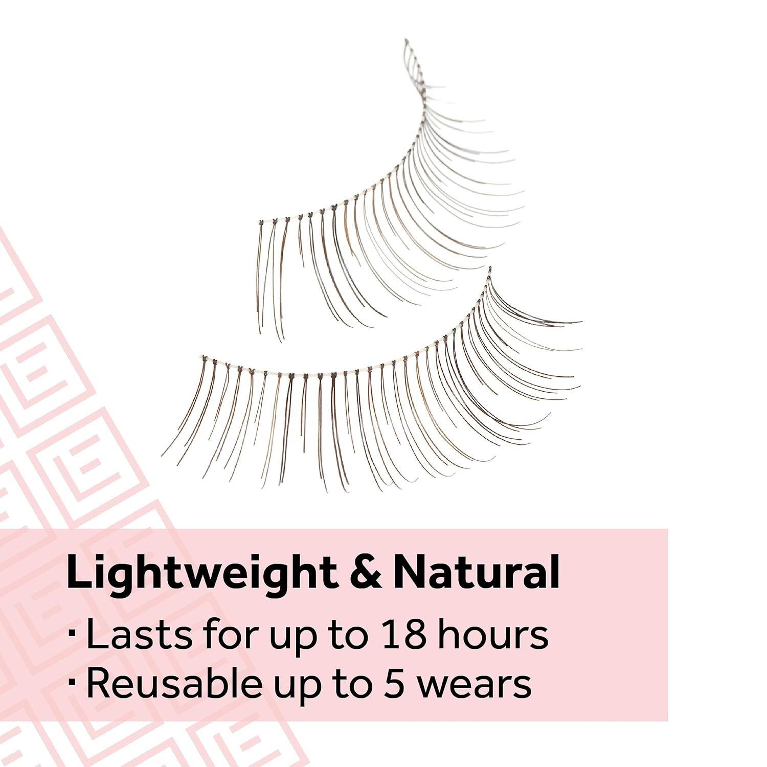 Eylure Naturals No. 020 Reusable Eyelashes, Adhesive Included, Black, 4 Pairs