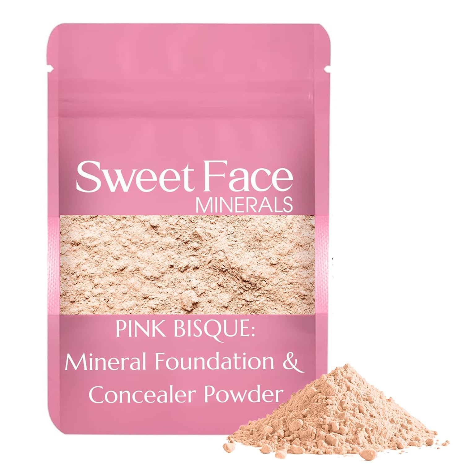 Foundation Powder Refill (Pink Bisque)(12 Gram Bag) By Sweet Face Minerals, Lightweight Mineral Loose Makeup Powder with SPF 20, Full Coverage Flawless Finish, Talc-free, Cruelty-Free, Refill Pouch