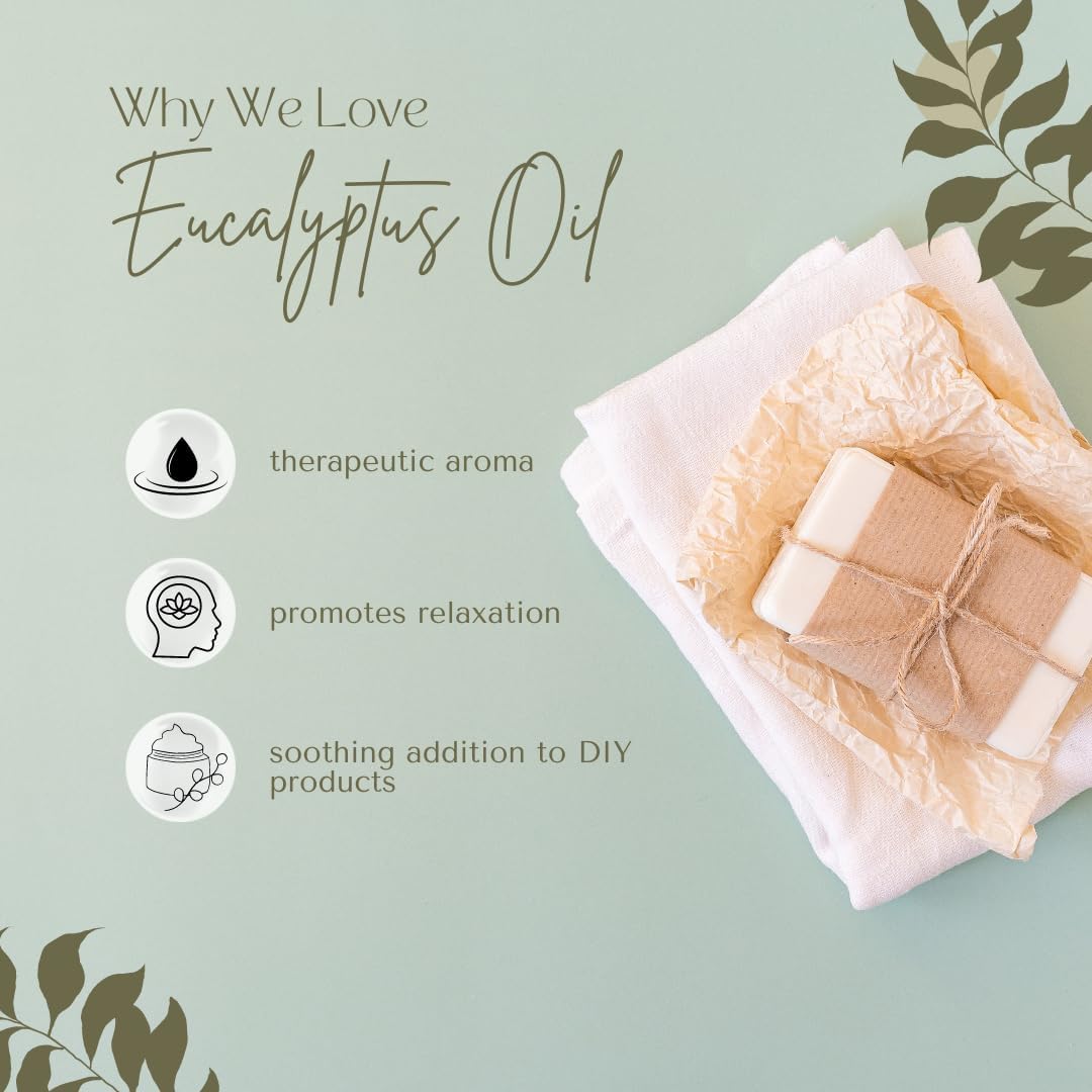 - 🌿 100% Pure Eucalyptus Oil – Undiluted, steam-distilled, and free from additives or fillers.