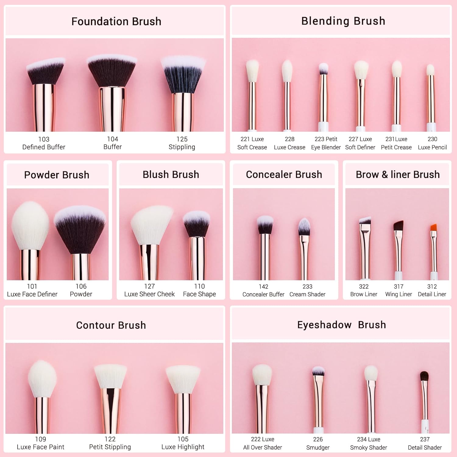 - Compatible different brushes type: Blend foundation,power and mineral makeup, Contour the face shape with cream and powder products,eyeshadow,lipstick.