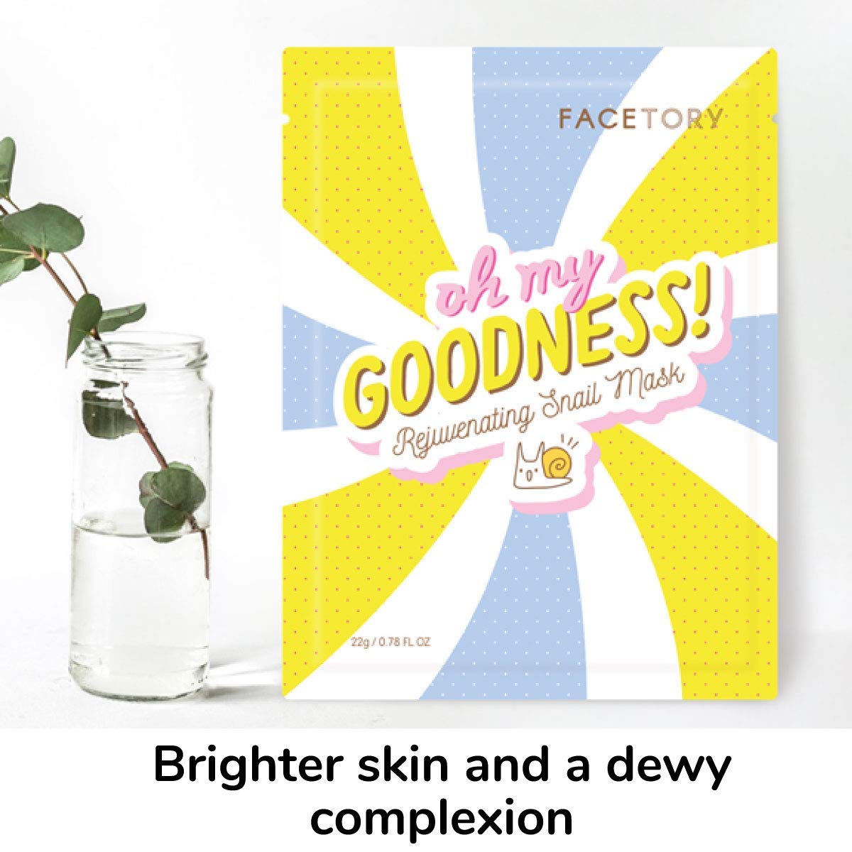 FACETORY K Beauty Face Mask Skin Care - OH MY GOODNESS REJUVENATING SNAIL Sheet Mask with Snail Essence & Hyaluronic Acid | Seal in Moisture (5 Pack)