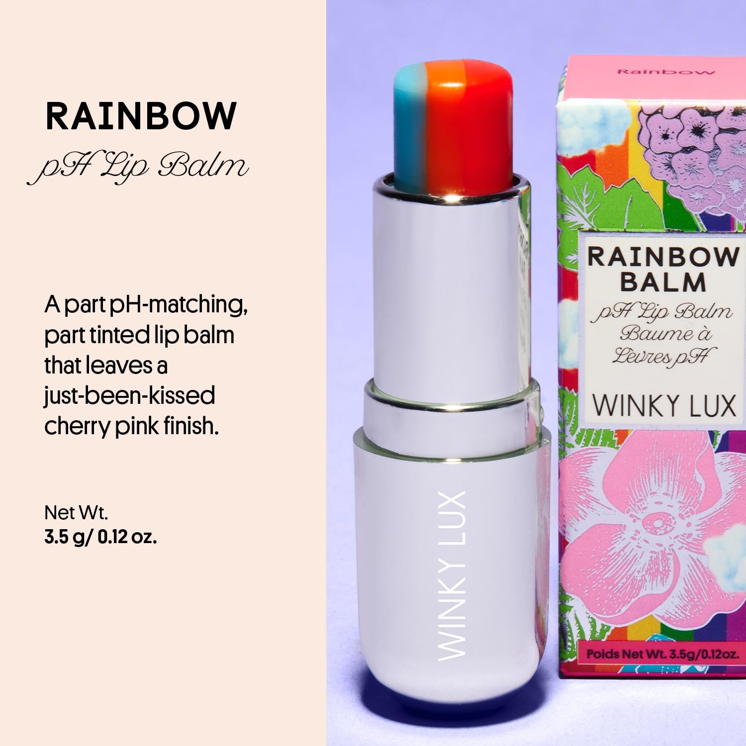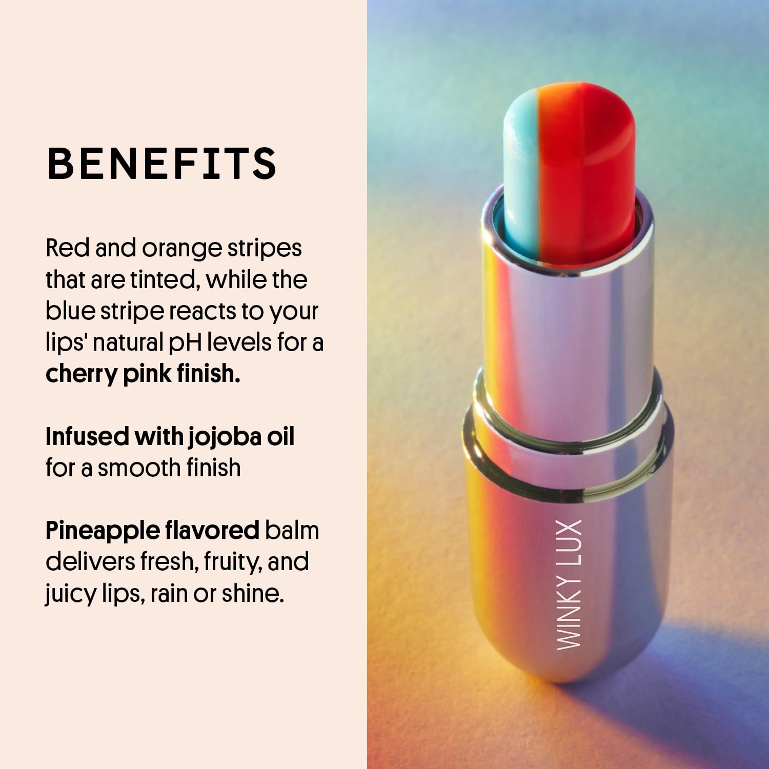 Winky Lux Rainbow Tri-Color Tinted Lip Balm – Hydrating Lip Care with Jojoba Oil & Vitamin E, Sheer Pink Tint, Moisturizes and Softens Dry Lips