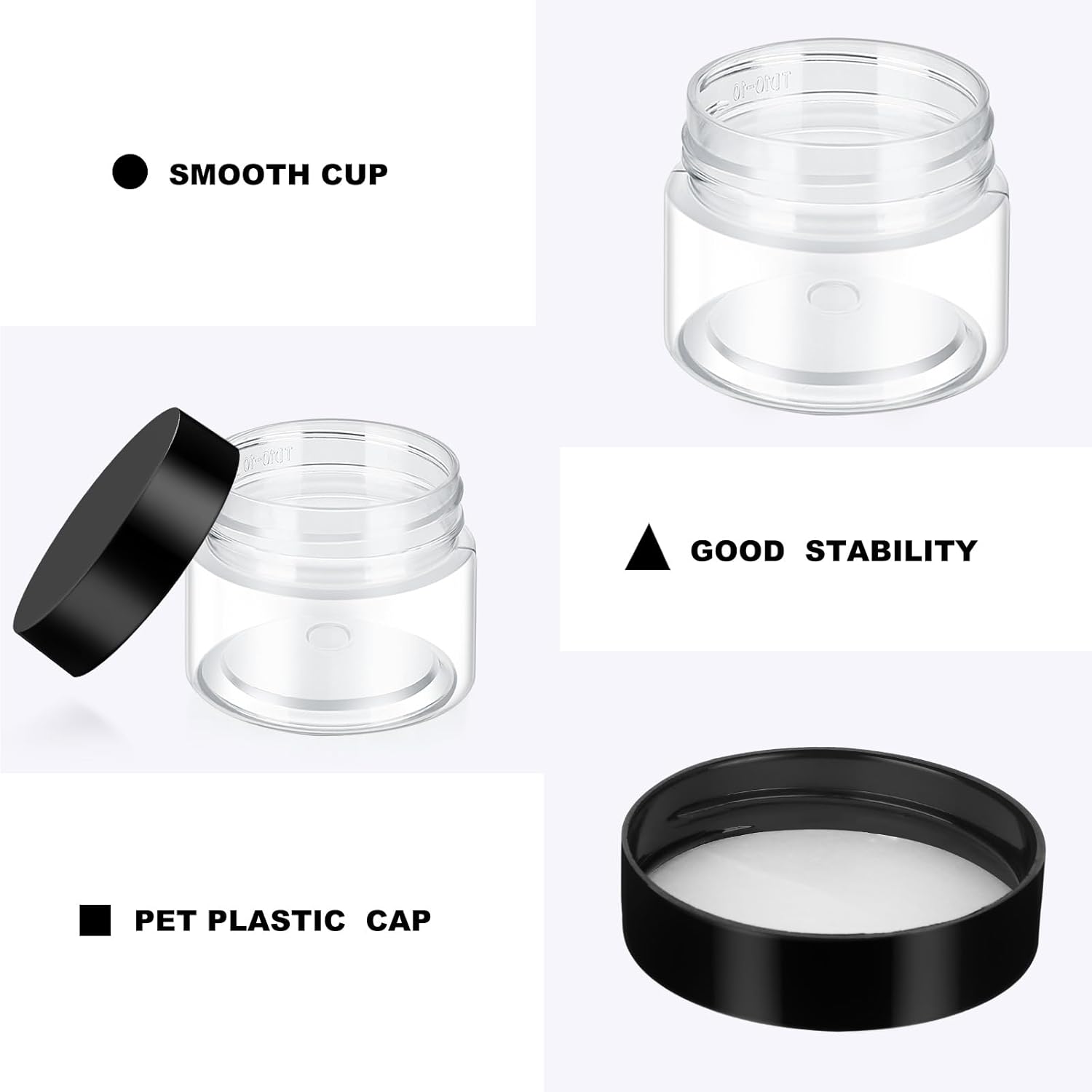 - Quality material: the 2.5 oz plastic jars with lids are made of quality clear plastic, without odd smell, does not contaminate your skincare products, stable, high temperature resistance, a black plastic cover with lid, sealed storage and leak proof