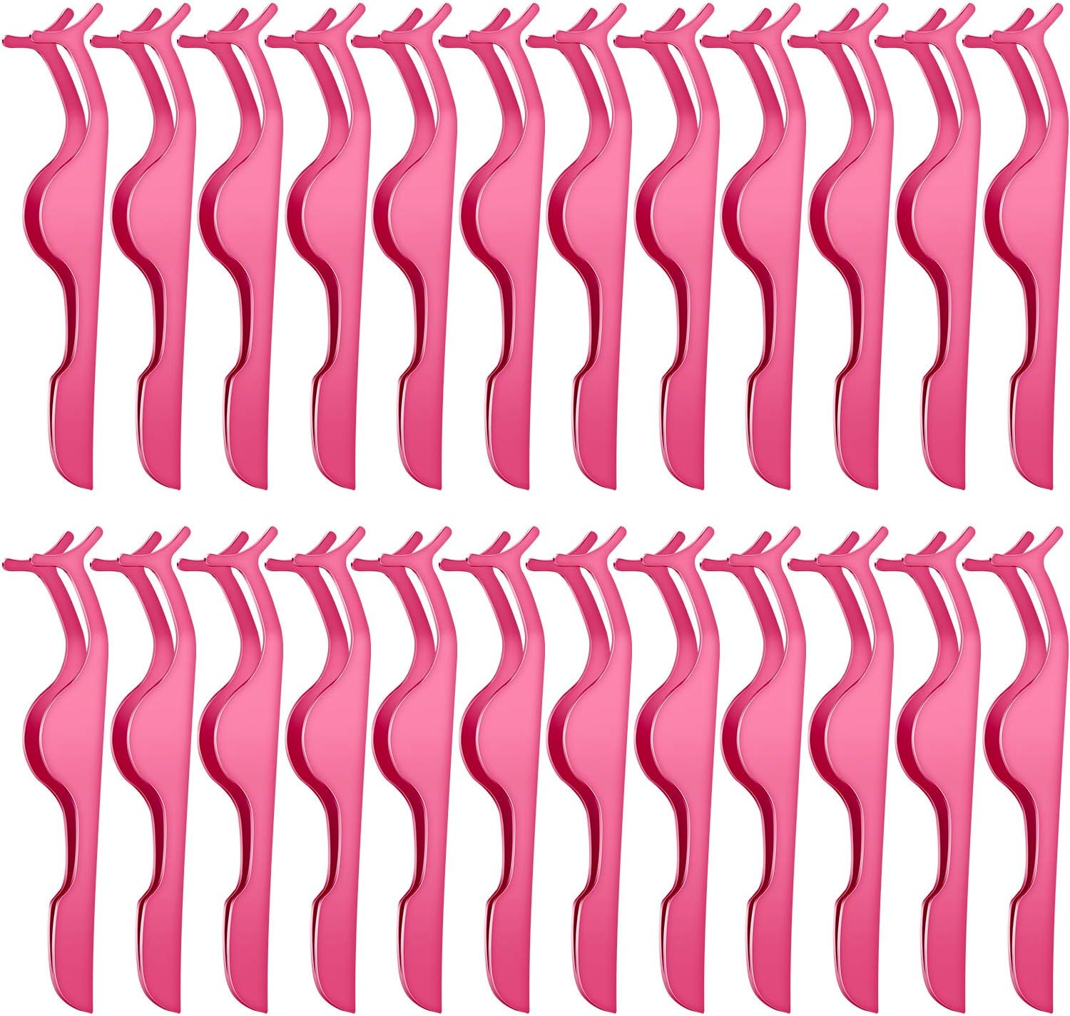 24 Pieces False Eyelashes Applicator Tool Stainless Steel Eyelash Extension Tweezers Remover Clip Tweezers Nipper Eyelash Auxiliary Clip for Women Makeup Application and Removal