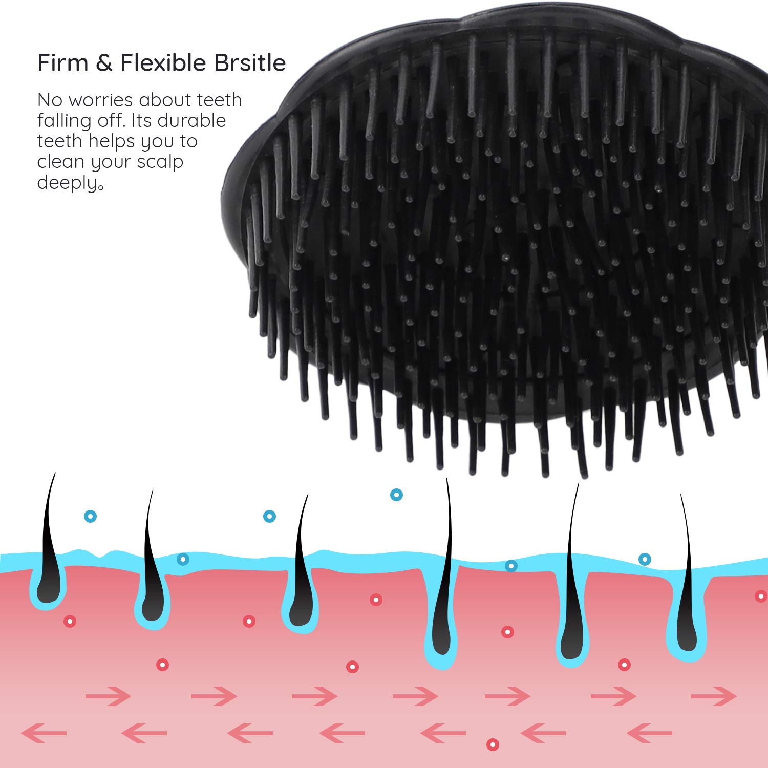- 【Firm and Fine Teeth】 Bristles are good shape, firm, flexible and stiff, which help wash hair more thoroughly, gently massage and exfoliate your scalp to release your stress while cleaning, hence less flaky and cleaner, without the trouble of itchy scalp.