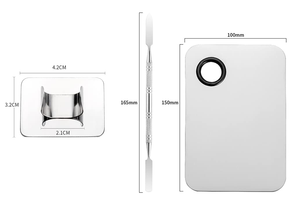 - 💄Finger ring palette Rectangle shape with curved thumb hole to fit the hand comfortably,Stainless steel color : strong and smooth, distinctive modelling.