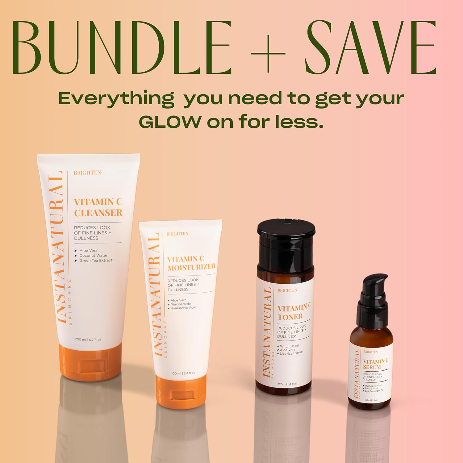 InstaNatural Vitamin C Four Step Skin Care Set with Face Wash, Toner, Serum & Moisturizer | All Natural Brightening & Hydrating Routine with Botanical Extracts – 1.68 Fl Oz (Pack of 4)