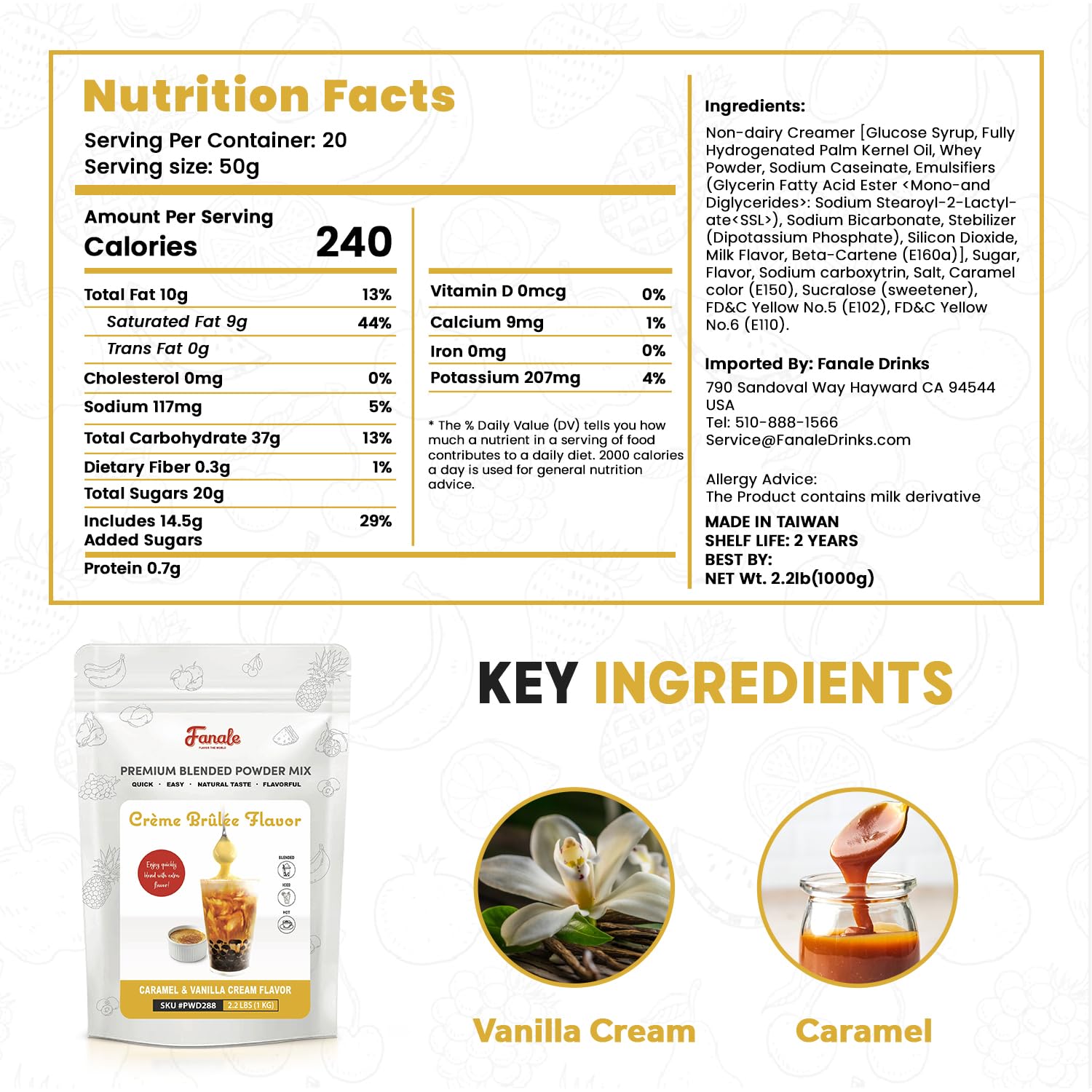 Fanale Premium Creme Brulee Bubble Tea Flavoring Powder | Perfect for Baking, Smoothies, Desserts and Drinks | Instant Flavoring Powder for Boba Milk Tea - 2.2 lb 1kg | PWD288