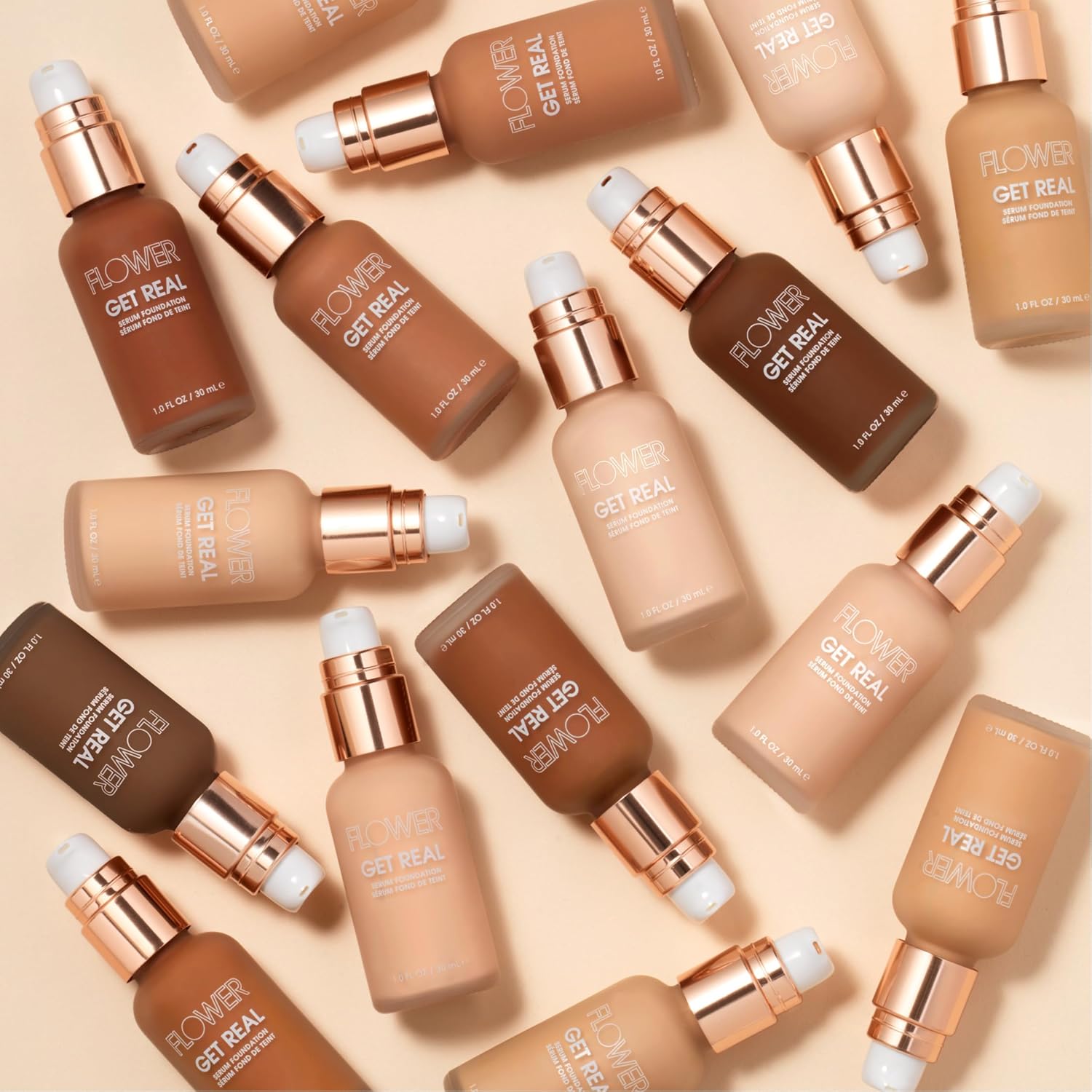FLOWER BEAUTY By Drew Barrymore Get Real Serum Foundation - Hydrating + Lightweight Formula - Light to Medium + Buildable Coverage (Sable)