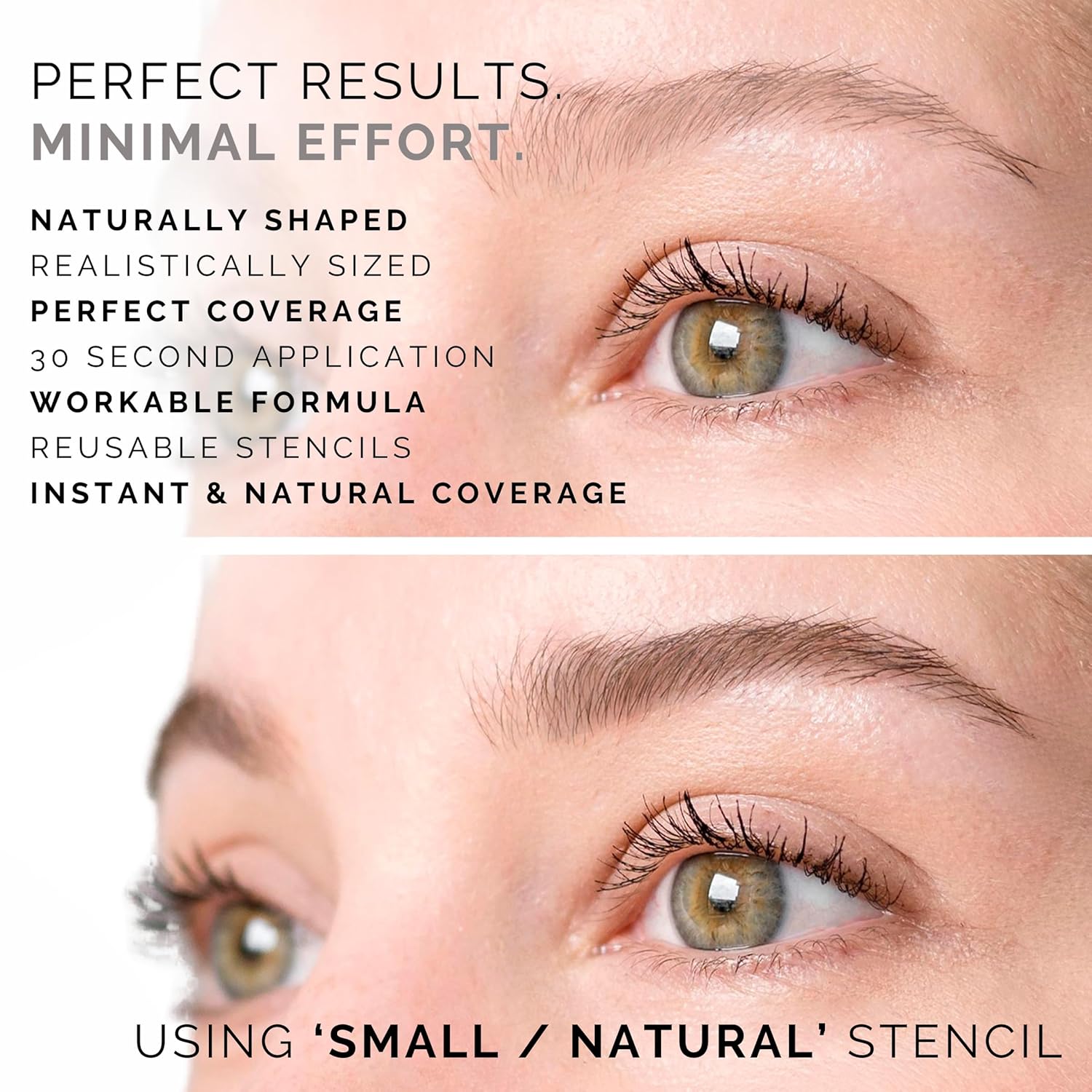- ADJUSTABLE COLOR & EASY APPLICATION - Beautiful brows, incredibly simple! Apply the chosen stencil, pat the double-sided, duo-colored applicator on over the stencil, enjoy your new brows. If you need the color lighter or darker, you can easily adjust the pigment's intensity by dabbing the applicator onto a dry, disposable paper option. With two colors on each applicator, updating your look has never been easier. Plus, with 9 naturally sized stencil shapes, you’re sure to find your perfect match!
