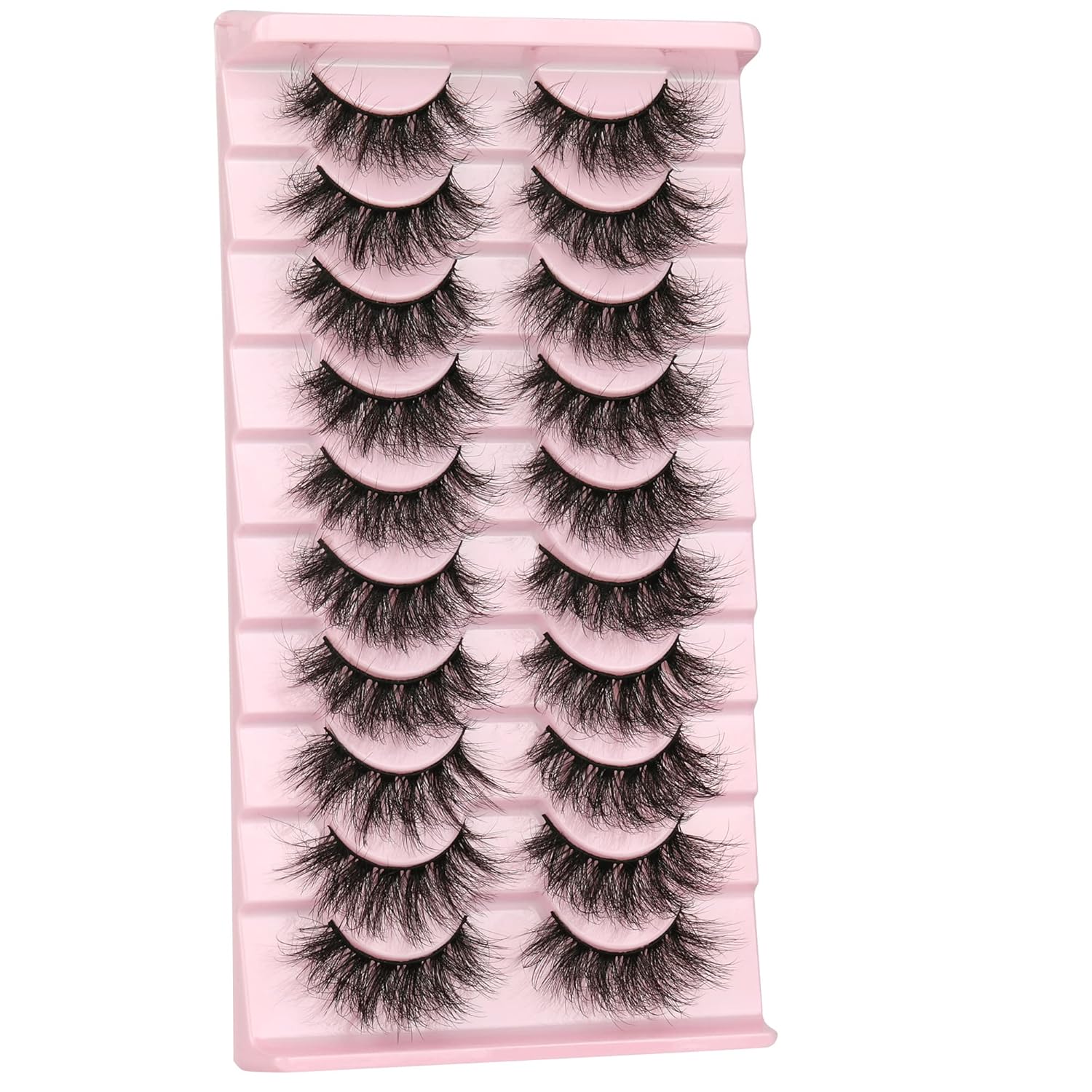 FANXITON Mink Lashes False Eyelashes Dramatic Full Mink Lashes Wispy 19 MM Natural Look 3D Fake Eyelashes 10 Pairs Pack