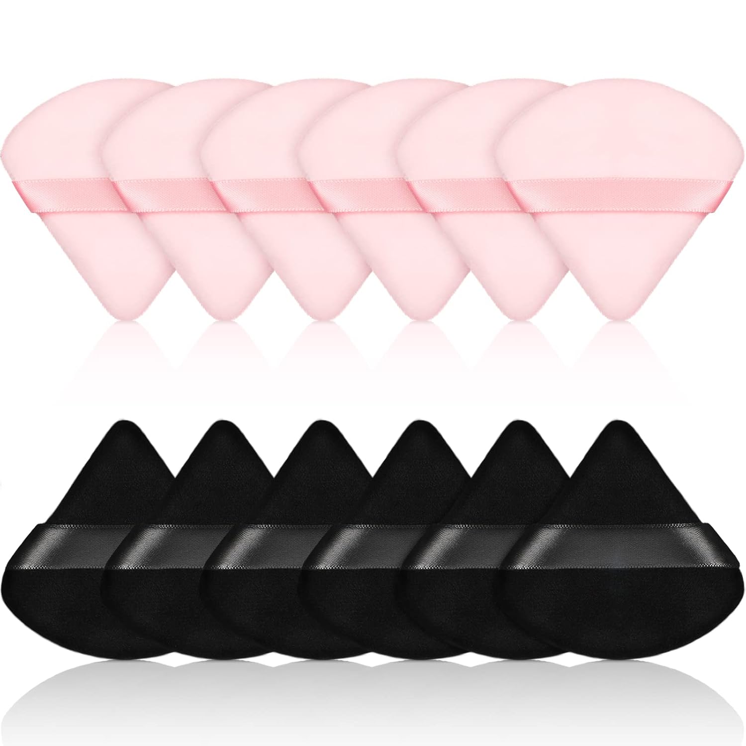 Maitys 12 Pieces Powder Puff Triangle Face Makeup Cosmetic for Loose Powder Soft Body Washable Reusable Foundation Sponge Mineral Wet Dry Makeup Tool for Women(Small,Black, Pink)