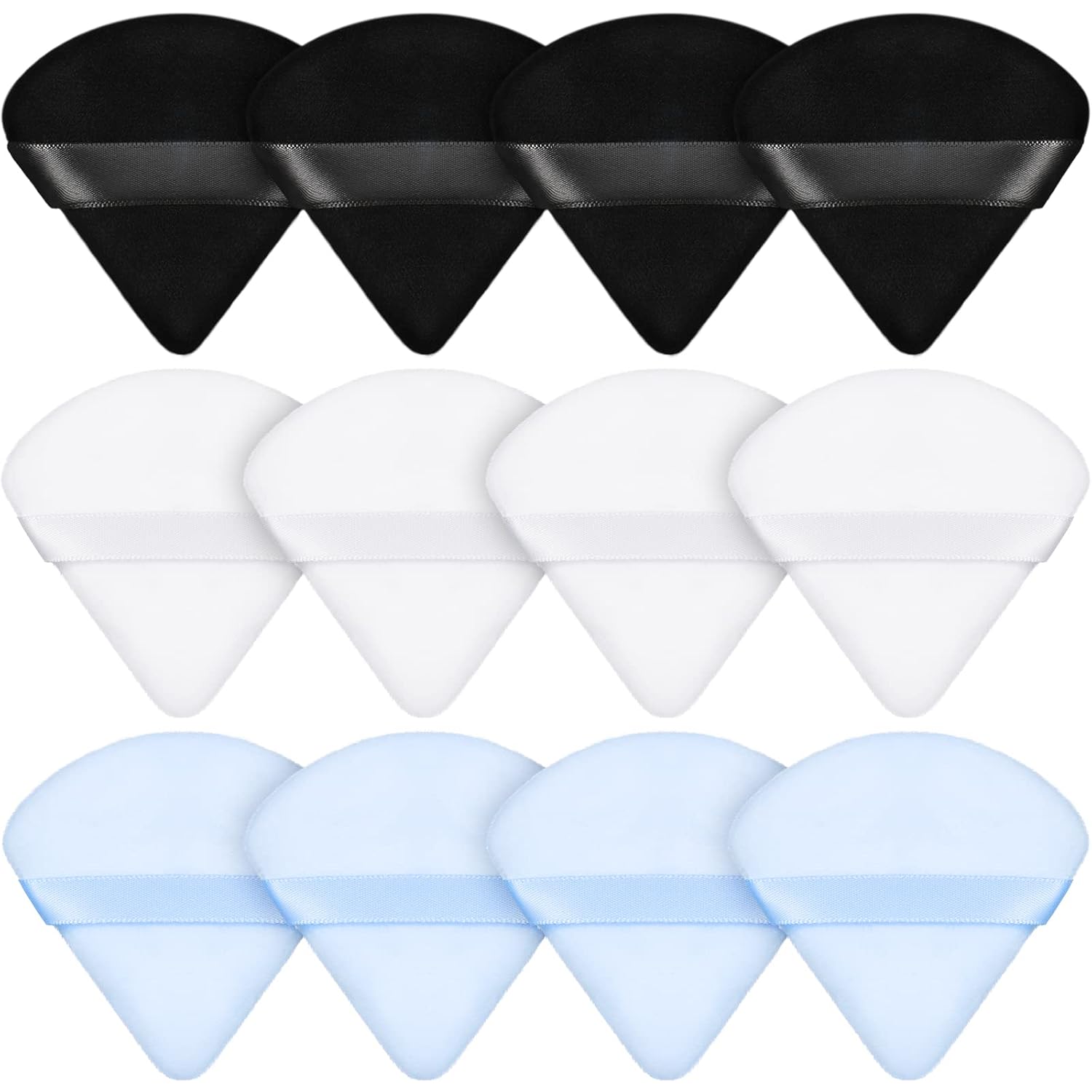 Maitys 12 Pieces Powder Puff Triangle Face Makeup Cosmetic for Loose Powder Soft Body Washable Reusable Foundation Sponge Mineral Wet Dry Makeup Tool for Women(Small,Black, White, Blue)