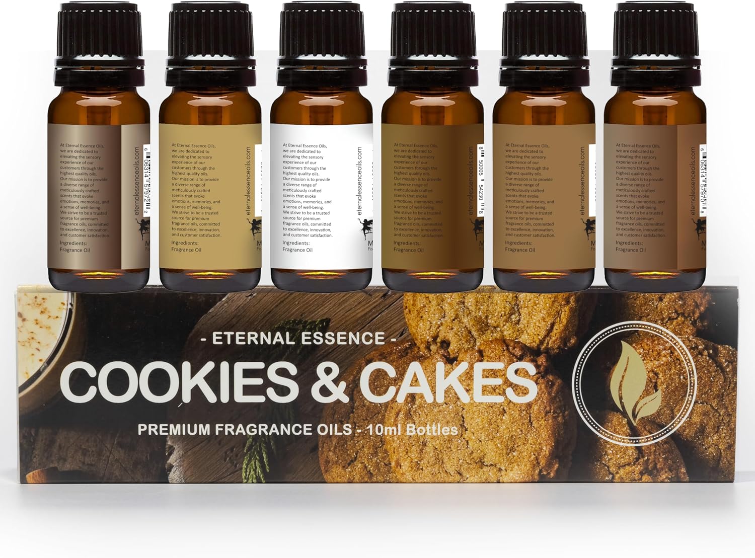 Eternal Essence Oils Cookies & Cakes Set of 6 Premium Fragrance Oils - Includes Caramel Nut Muffin, Oatmeal Cookie Dough, Malibu Rum Cupcakes, Maple Pecan, Snickerdoodle, and Cinnabon - 10ML