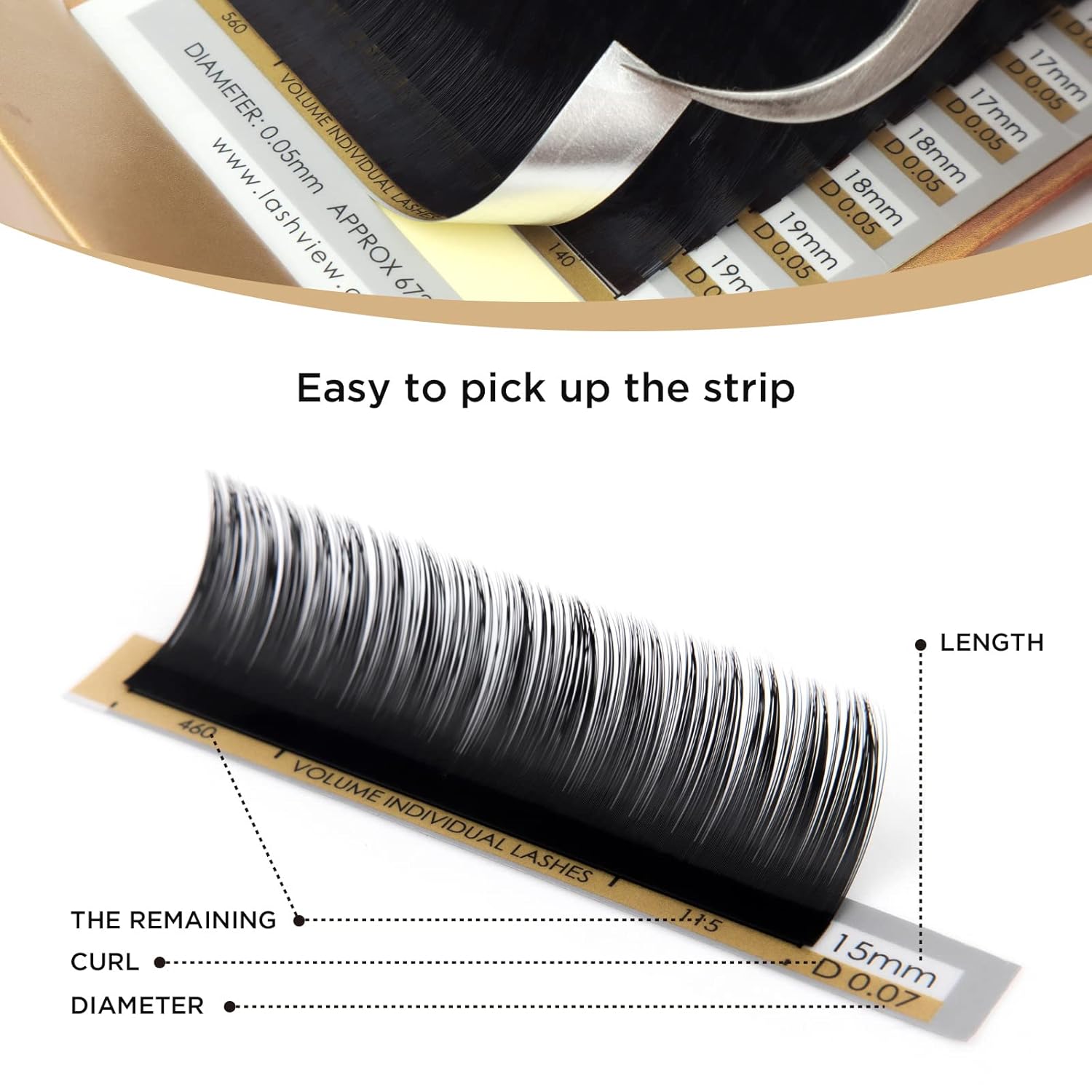 LASHVIEW Russian Volume Lashes 0.03mm Thickness CC Curl 8-15mm Mix Tray Faux Mink Individual Eyelash Extension Soft Semi-Permanent Lashes Pure Korean(Professional Salon Use)