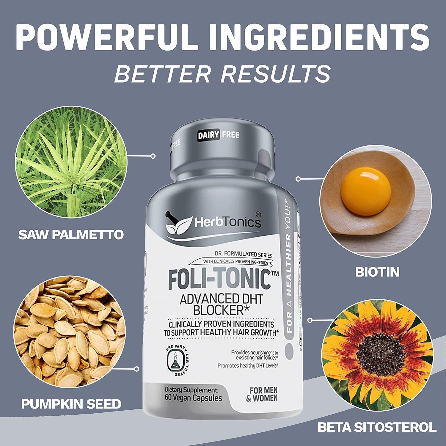 Hair Growth Vitamins for Women & Men | DHT Blocker with Saw Palmetto & 10000mcg Biotin, Foli Tonic Hair Growth Supplement – Supports Fuller, Thicker Hair Appearance, Non-GMO, 120 Vegan Capsules