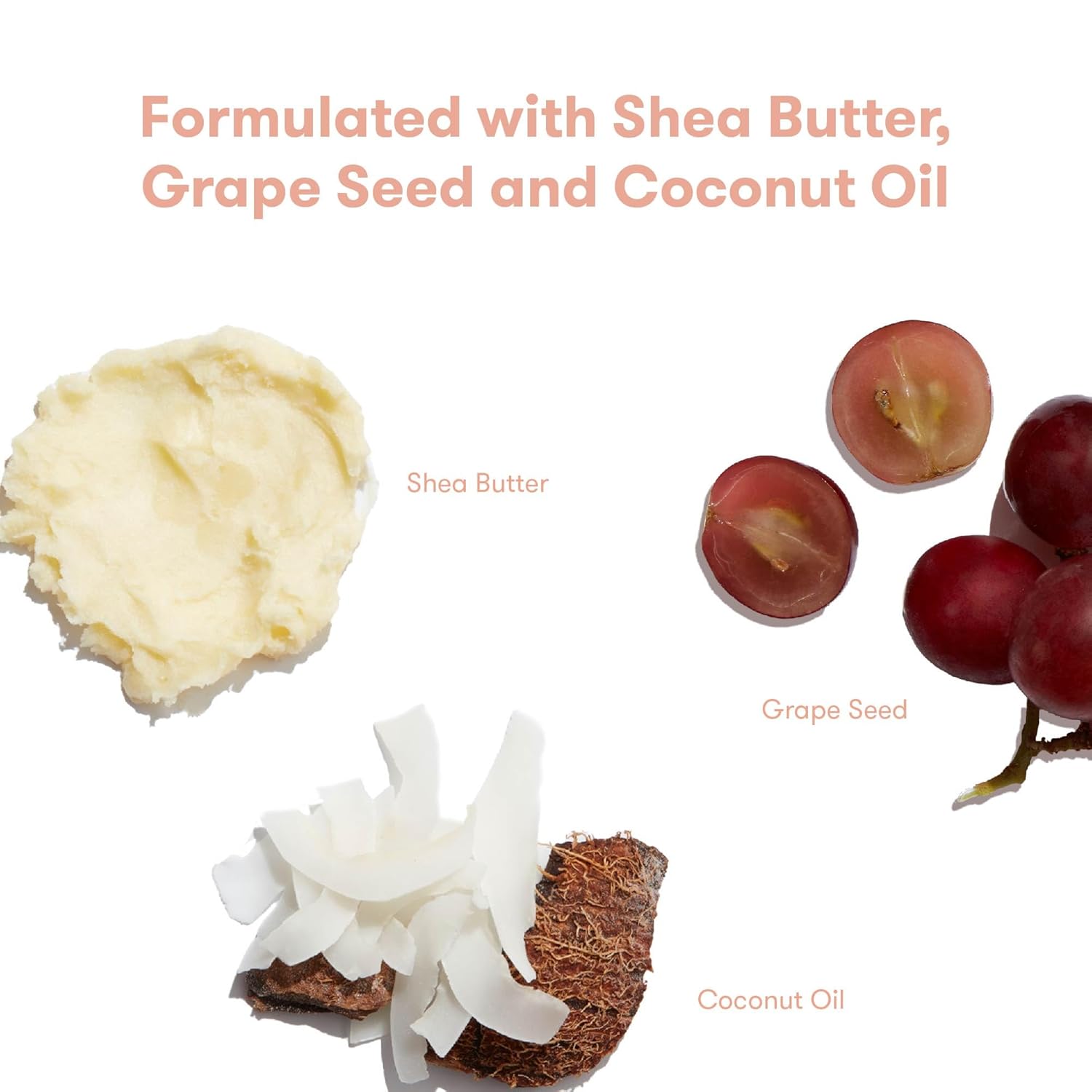 - COCOCNUT OIL, SHEA BUTTER + GRAPESEED: Gentle emollients that keep moisture on lock and strengthen the skin’s natural barrier