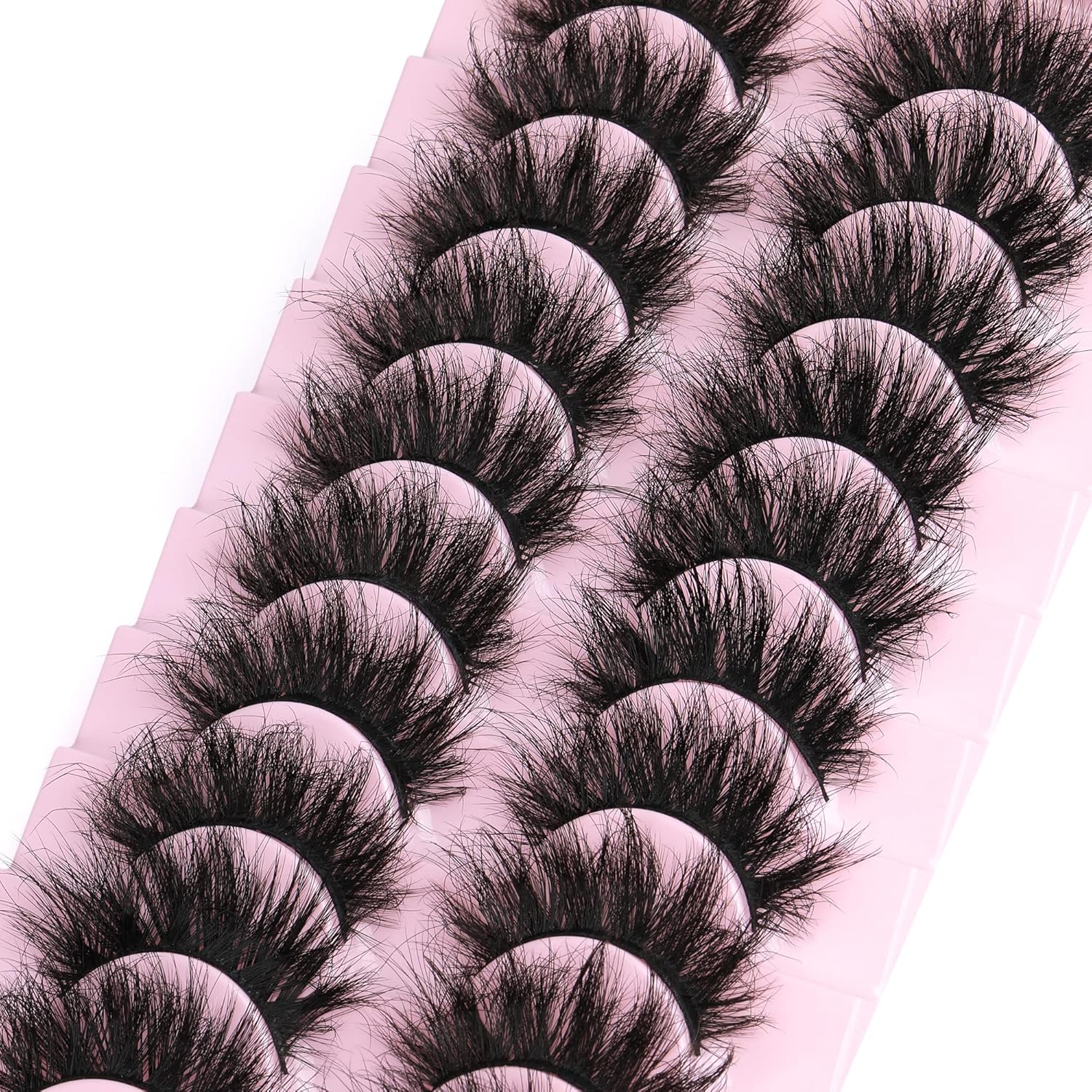 Mink Lashes 8D Volume Dramatic False Eyelashes Soft 20 mm 10 Pairs Pack Wispy FANXITON Faux Mink Eye Lashes