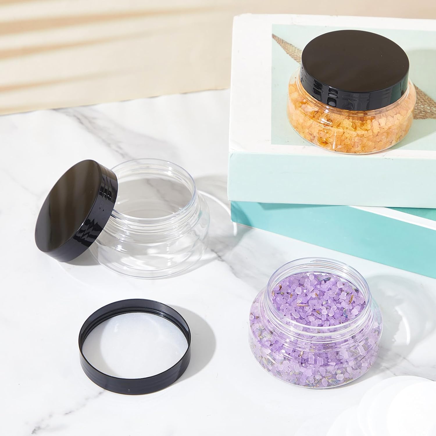 - Wide Application: these small jars with lids are not only suitable for storing cosmetics, lotions, body butter, but also dry food, nuts, spices, flour, sugar and other foods to keep them fresh, you can put them in the dressing table, bathroom, bedroom or kitchen, and open them when you need