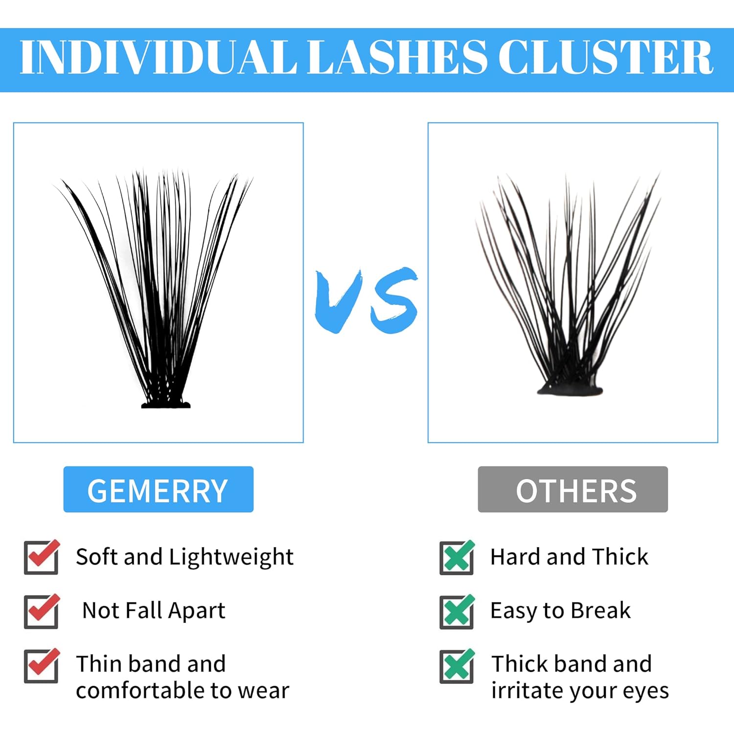 - ❤Beginner-Friendly Lashes: GEMERRY lash extension clusters are designed for beginners and are easy to use.Say goodbye to salon appointments and hello to DIY lashes. You can create your favorite lash style as much as you want, just enjoy it!