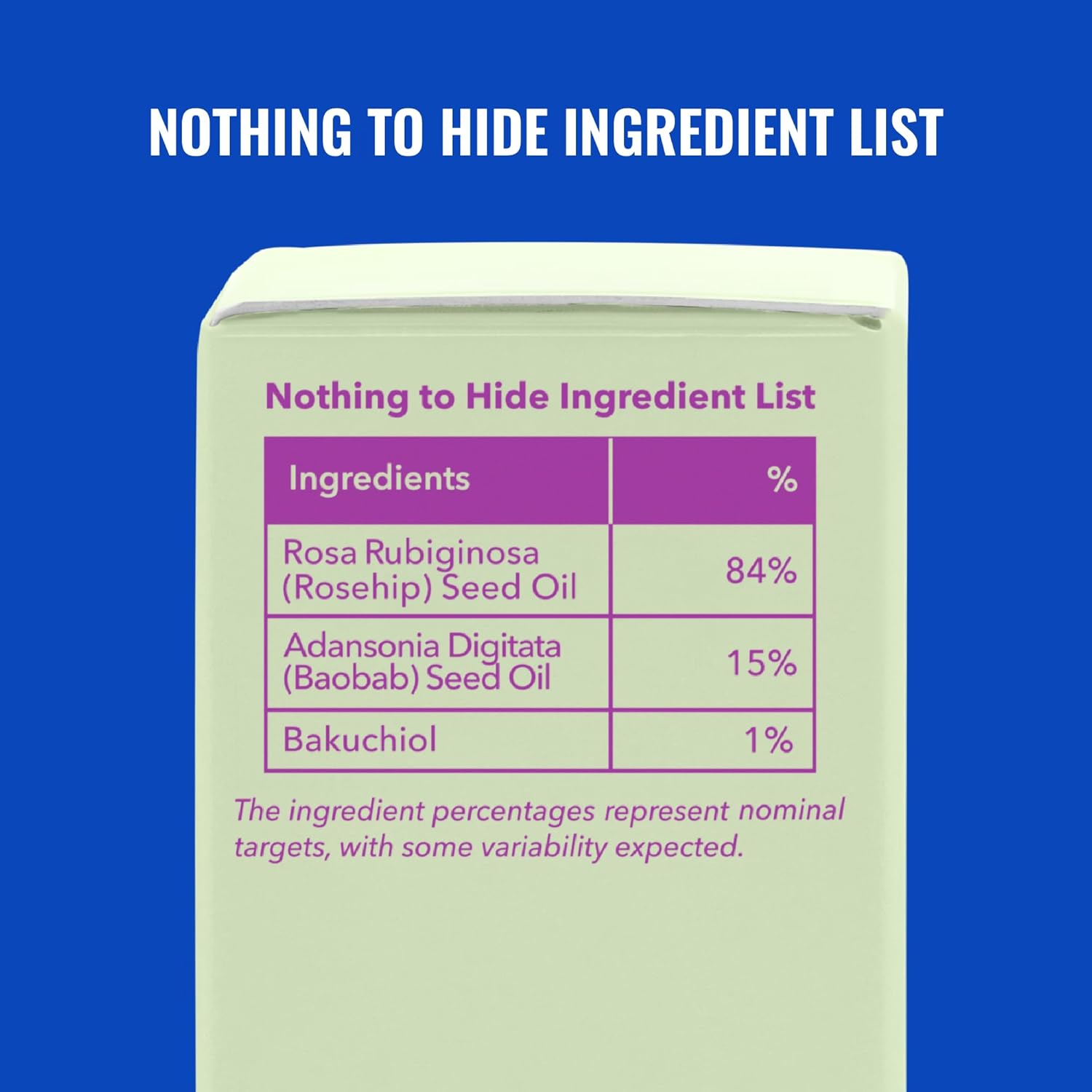 - FORMULATED FOR OILY SKIN TYPES: This oil blend is gentle enough for all skin types but can be particularly beneficial for those with oily skin. Our formula contains only the bakuchiol, rosehip, and baobab oils with no added fragrances or chemicals.