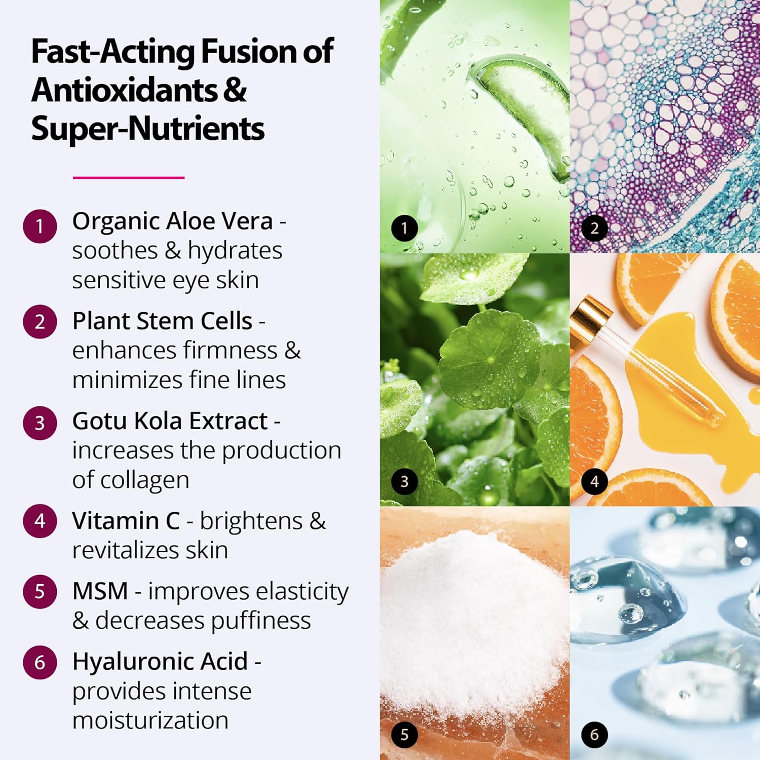 - EXQUISITE SOLUTIONS FOR UNDER EYE BAGS: Combat under-eye circles and puffiness with ingredients like Stem Cells, Aloe Vera, and Gotu Kola Extract for a brighter, tighter appearance. Our infused formula reinforces the skin's natural barrier, improving hydration and moisture retention for long-lasting results.