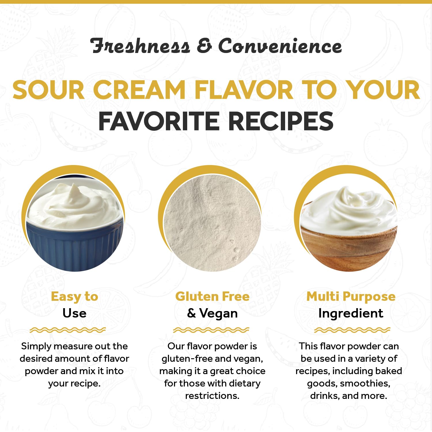 - ๐๐๐ฌ๐ฒ ๐ญ๐จ ๐ฎ๐ฌ๐: Simply measure out the desired amount of Sour Cream flavor powder and mix it into your recipe. No need to chop, grind, or blend Sour Cream , as this powder provides all the nutty flavor you need in a convenient form.