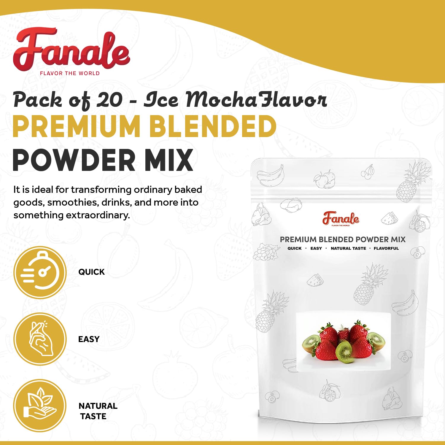 Fanale Premium Ice Mocha Bubble Tea Flavoring Powder | Perfect for Baking, Smoothies, Desserts and Drinks | Instant Flavoring Powder for Boba Milk Tea - 2.2 Pounds (Pack of 20)