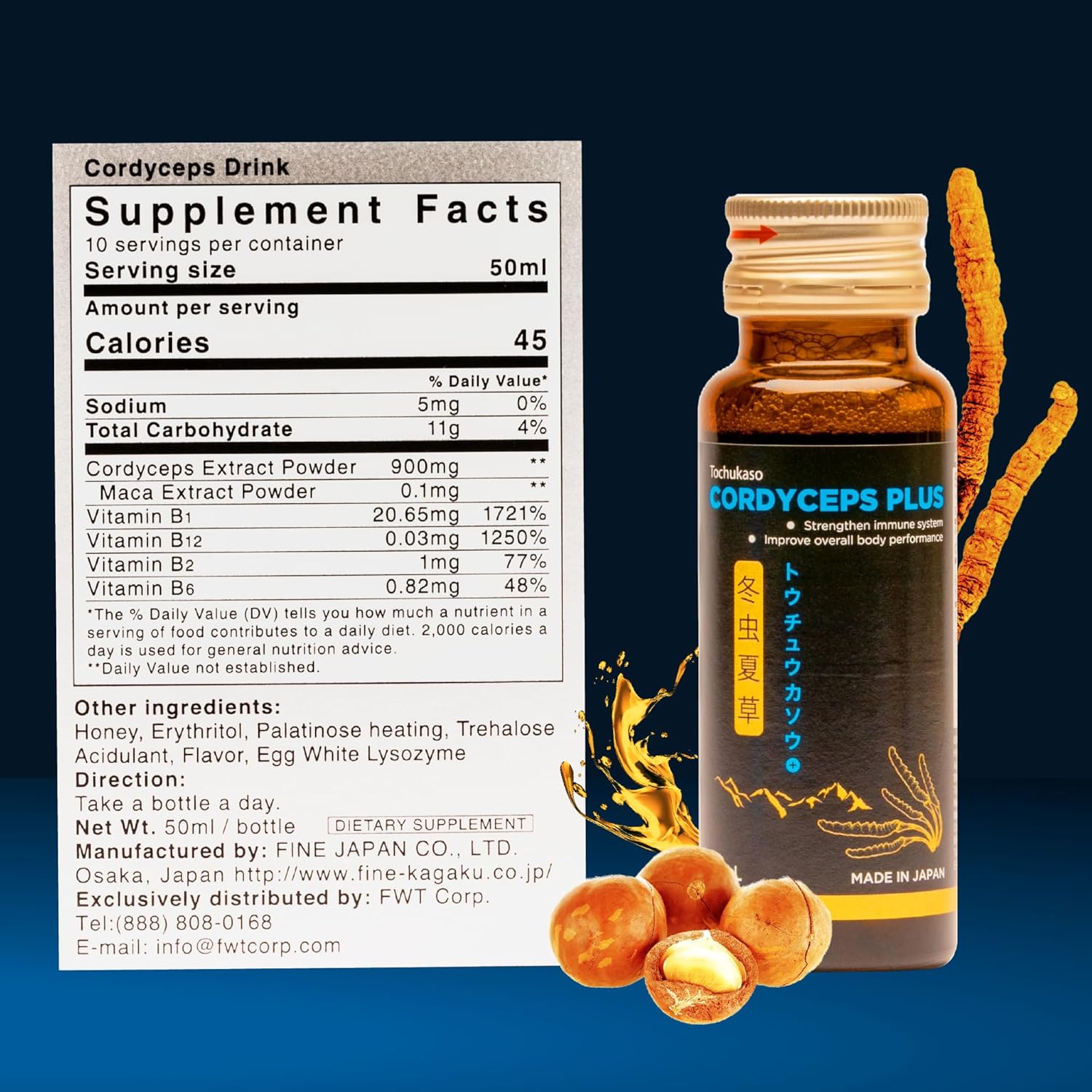 - Quality Assurance - Fine Japan is committed to providing high-quality products. Our Cordyceps Plus with Macadamia & Cordyceps Extract is manufactured under strict quality control standards to ensure you get a product you can trust.