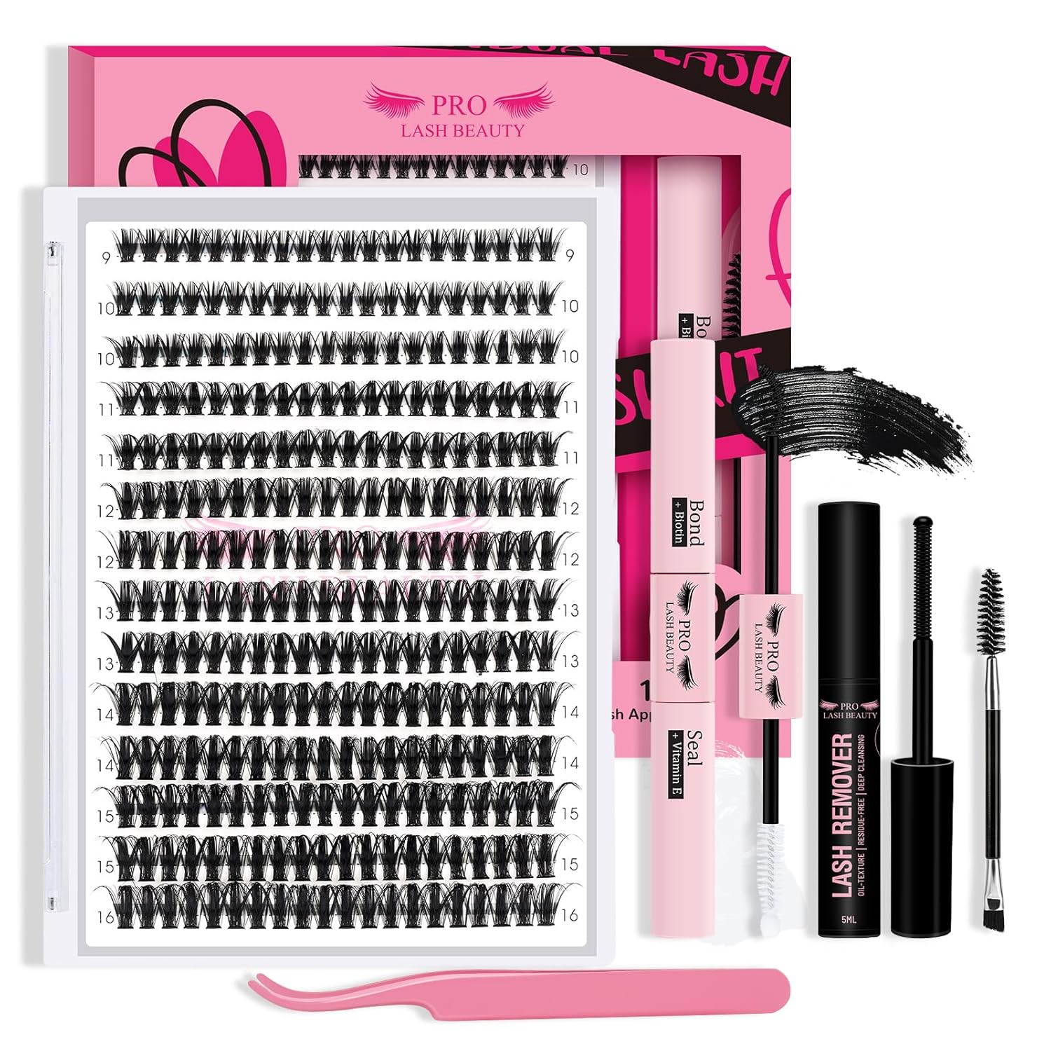 - DIY Lash Extension Kit: PRO DIY Lash Kit includes: 1 tray of eyelash which means 280 Pcs individual lashes, lash Bond and Seal,Lash Remover and lash Applicator .Try to DIY your own lashes now!