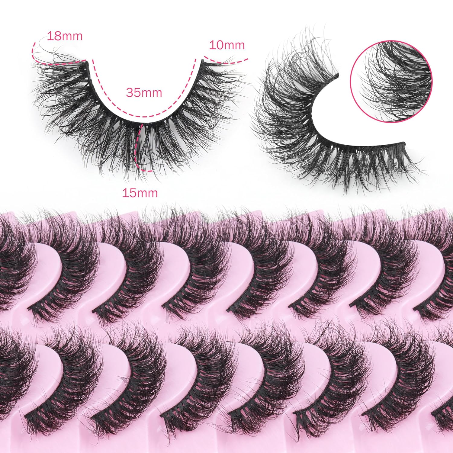 Mink Lashes 10 Pairs False Eyelashes D Lashes Natural Cat Eye Volume Faux Mink Lashes Wispy 18 mm 5D Thick Soft Eyelashes Pack by FANXITON