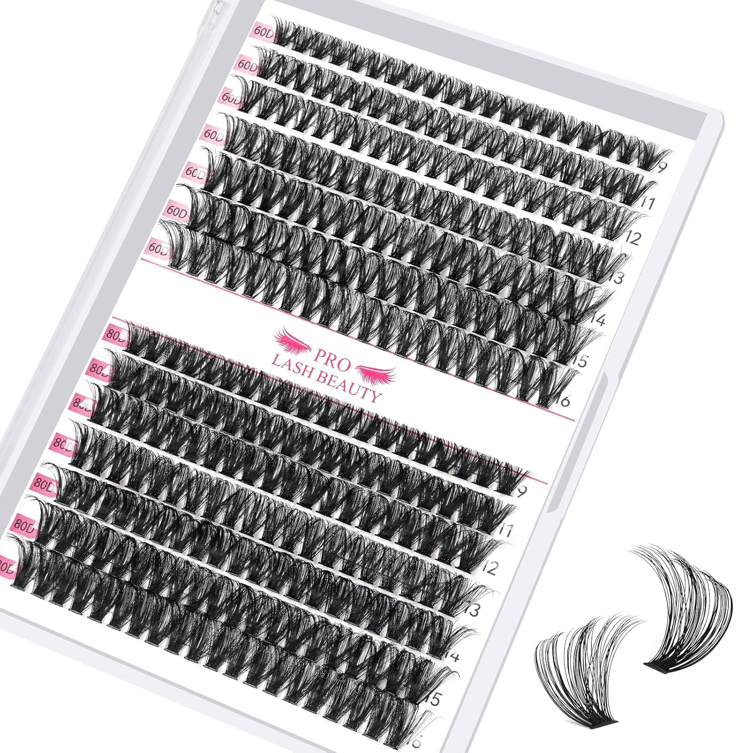280 Pcs Individual Lashes 60D+80D Mixed 0.05 Lash Clusters 14 Rows that Look Like Eyelash Extensions DIY Lash Extension Self Application At Home (60+80-D-9-16mix)