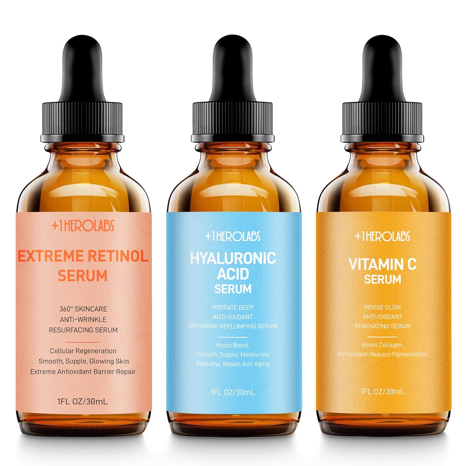 - ANTI-AGING SERUM: +1HEROLABS Retinol Serum for face is a top choice for retinol anti-aging enthusiasts. Based on an exclusive retinol formula with Vitaminogen B5, this serum has excellent SOD activity that dramatically slows cellular aging and boosts collagen production for smooth wrinkles visible to the naked eye.