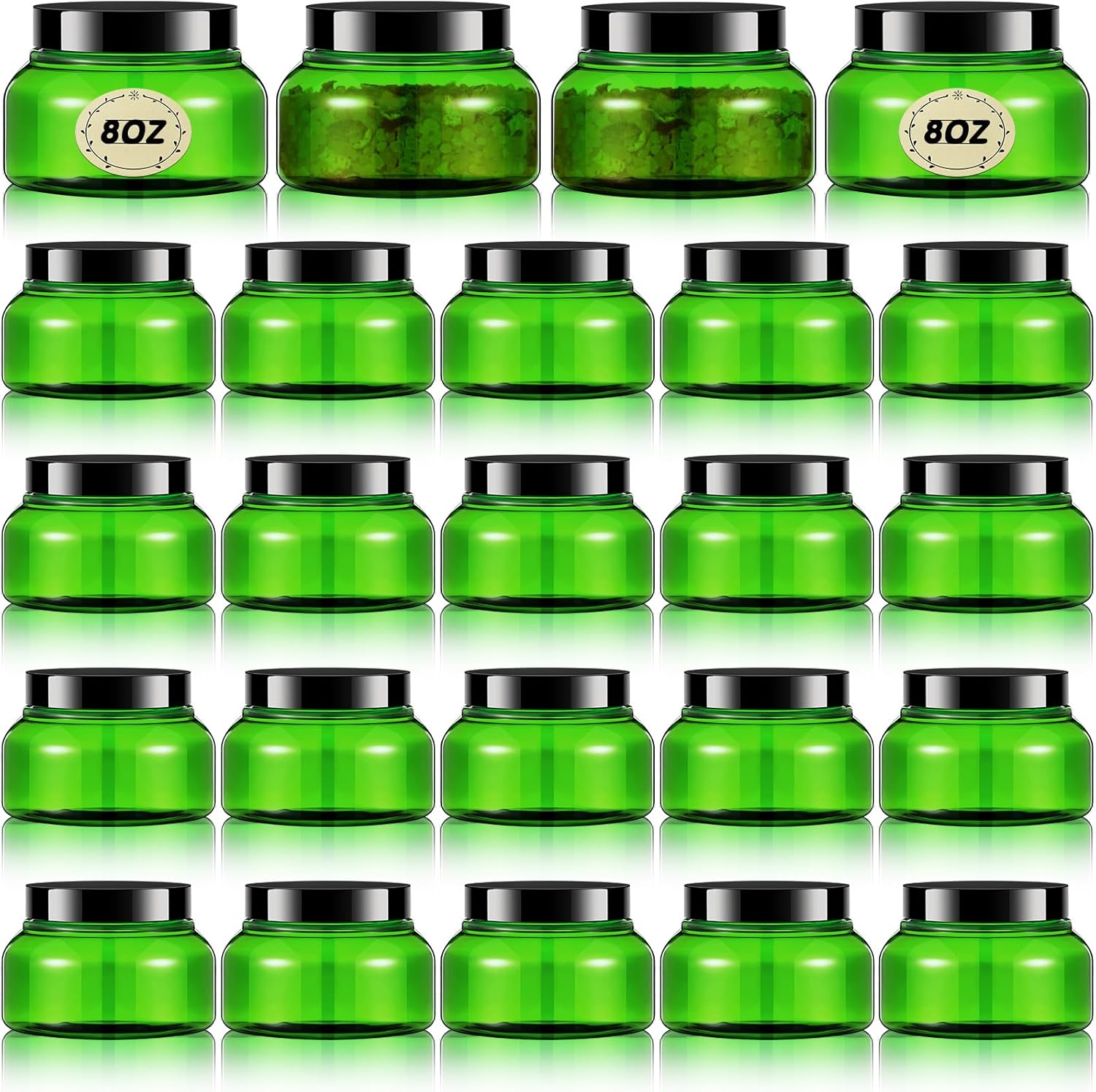 Tessco 24 Pack Plastic Jars with Lids Labels Empty Clear Plastic Jars Round Refillable Cosmetic Containers Body Butter Containers Bulk Sugar Scrub Bottle for Make Up(8 oz,Green, Black)