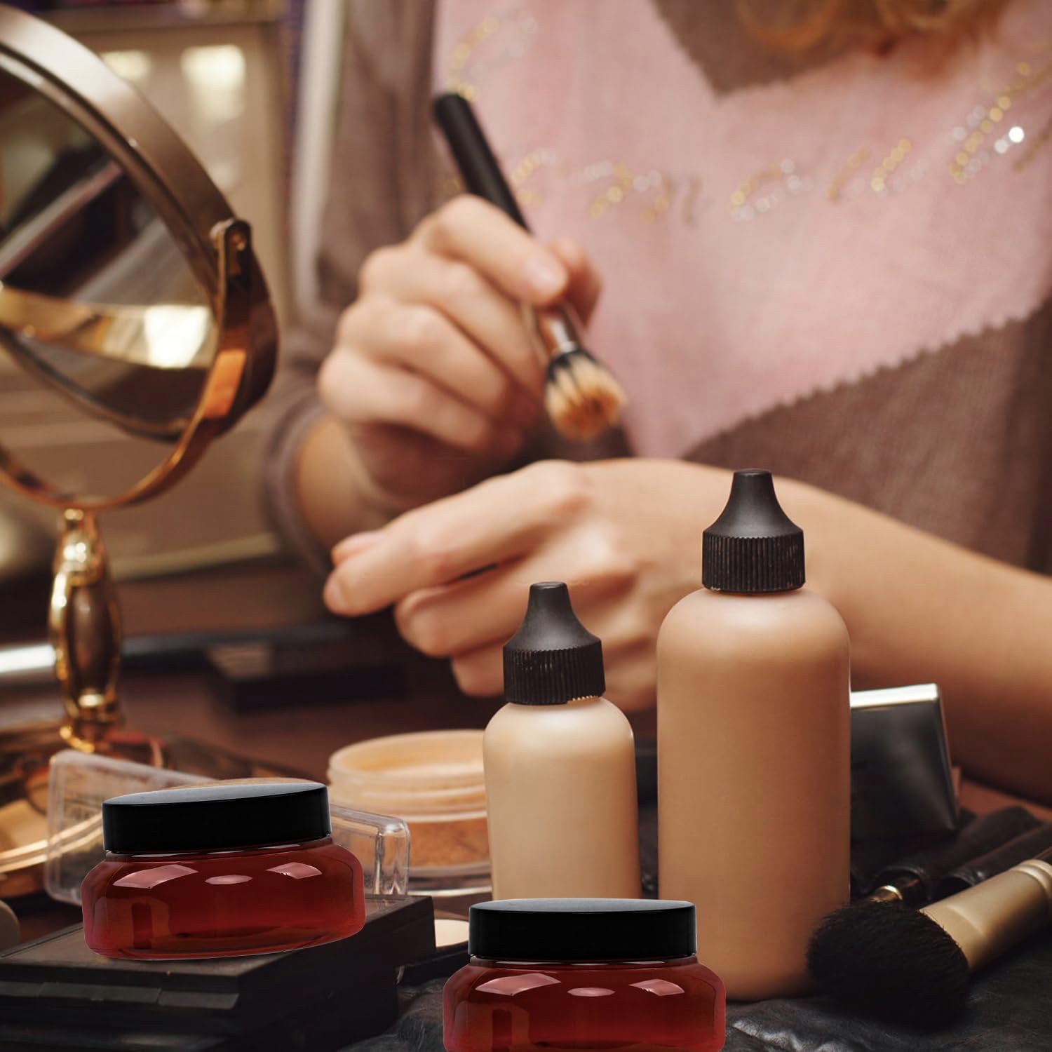 Amber Plastic Jars with Lids, 12 Pack Brown Body Scrub Jars Empty Refillable Containers Round Low Profile Samples Jars for Lotion, Body Butter, Sugar Scrub, Cream (5.3 OZ)