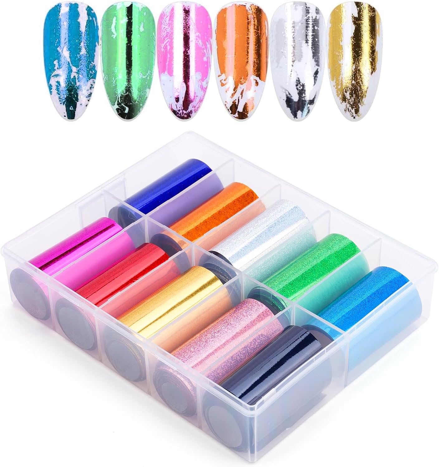 - Various Color: Package includes 10 colors of Nail Art Foil Transfer Sticker. You can apply with your nail polish, gel nail polish or foil glue to give them a full play.