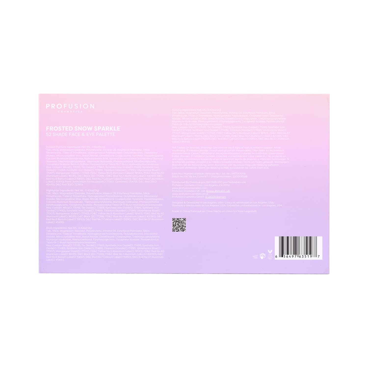 Profusion Cosmetics Frosted Snow Sparkle 52 Shade Face and Eye Palette, Multi Finish Shadows for Bold and Glamorous Evening Looks, Blendable and Buildable Blushes for Endless Stunning Looks