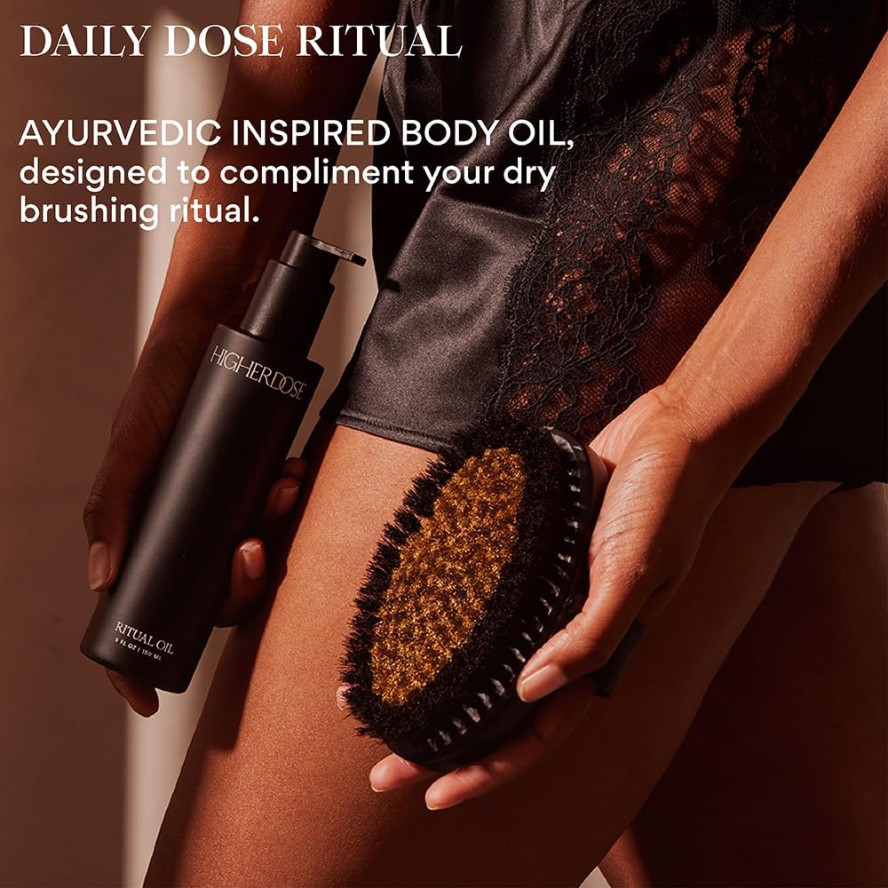 HigherDOSE Ritual Oil - Ayurvedic Daily Nourishing Body Oil for Dry Skin - Moisturizing Body Oil Enriched with Sea Buckthorn & Essential Oils to Deliver Nourished, Toned & Glowing Skin (5 Fl Oz)
