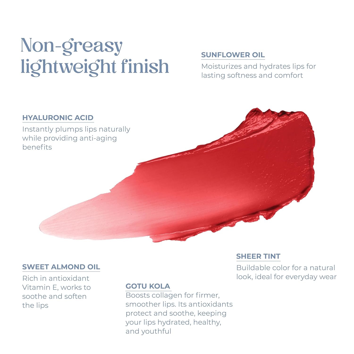 Tinted Lip Balm. Moisturizing Sheer, Buildable Lip Color with Hyaluronic Acid, Vitamin E and Rich Oil, Perfect Revitalizer for Chapped Lips. Beauty Plumper Moisturizer 0.21oz- Ruby Rouge
