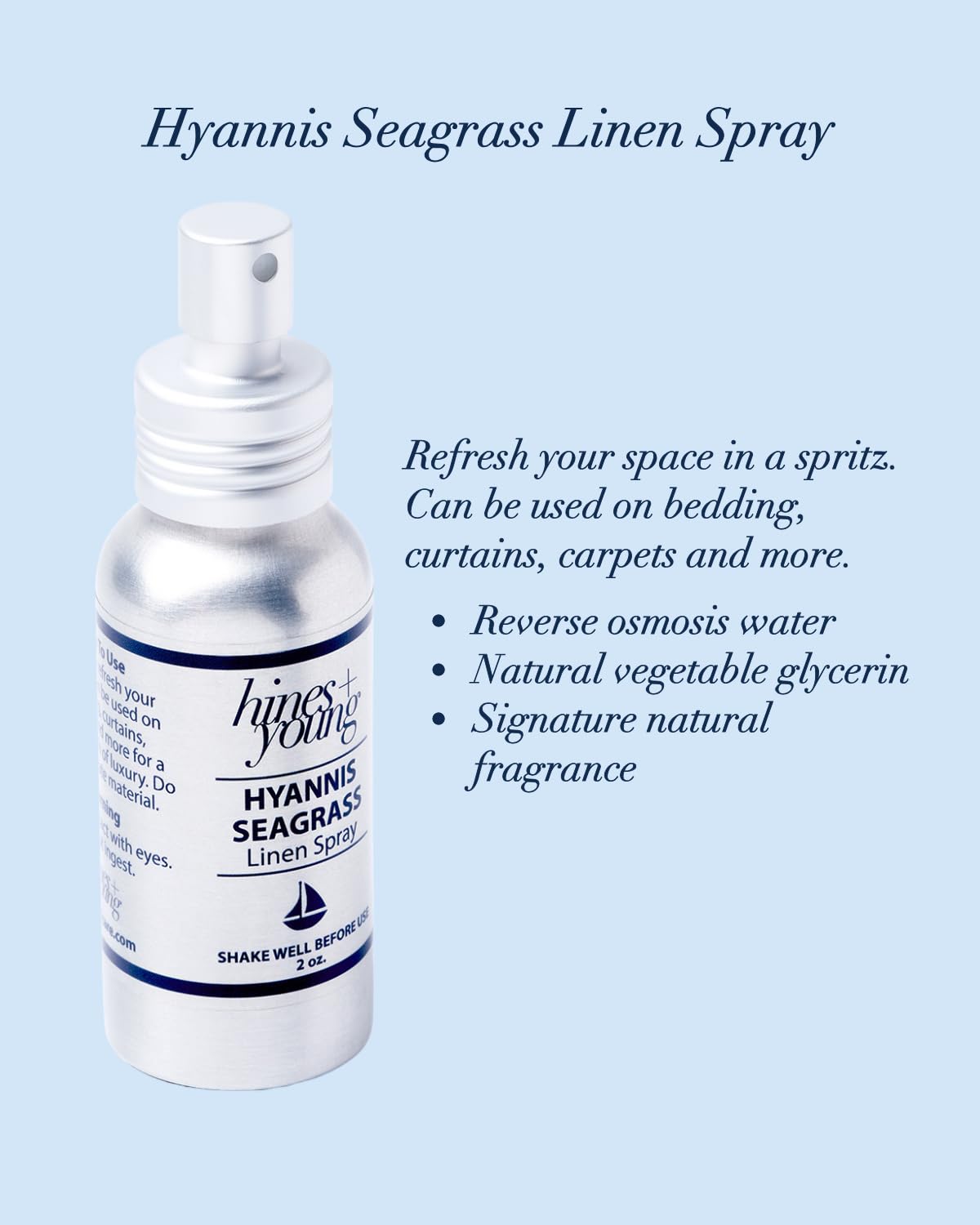 Hines+Young Travel Tins Gift Set - 4 oz Body Cream, 2 oz Linen Spray, Natural Lip Balm - Skin Care and Refreshing Home Fragrance, Ideal Self-Care Gift Set (Pack of 3, Hyannis Seagrass)