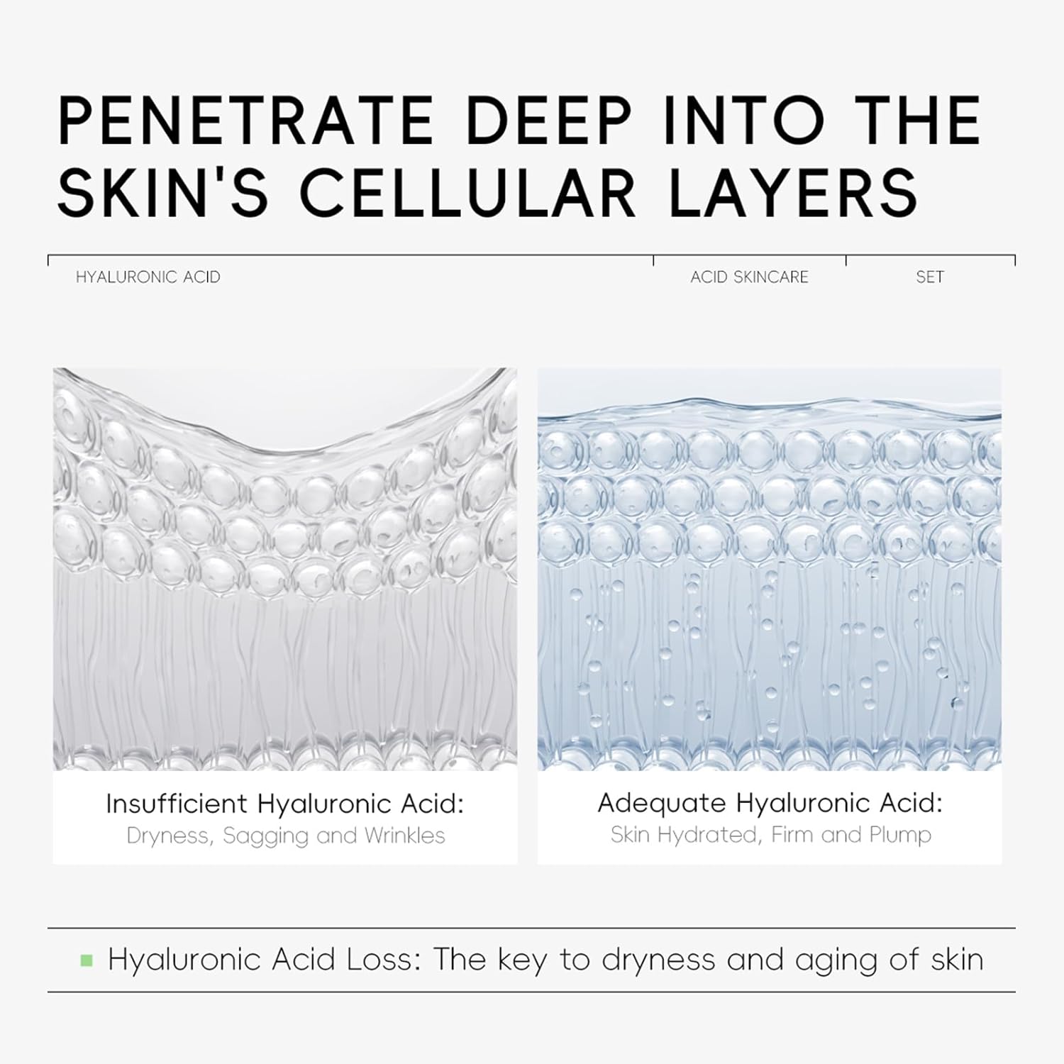 Hyaluronic Acid Skin Care Set, Hydration Kit for Women Teen Girls, Low pH Cleanser, Moisturizer, Serum, Eye Cream, Anti Aging, Firming, Travel Size Facial Care Gift Set for Dry Sensitive Skin