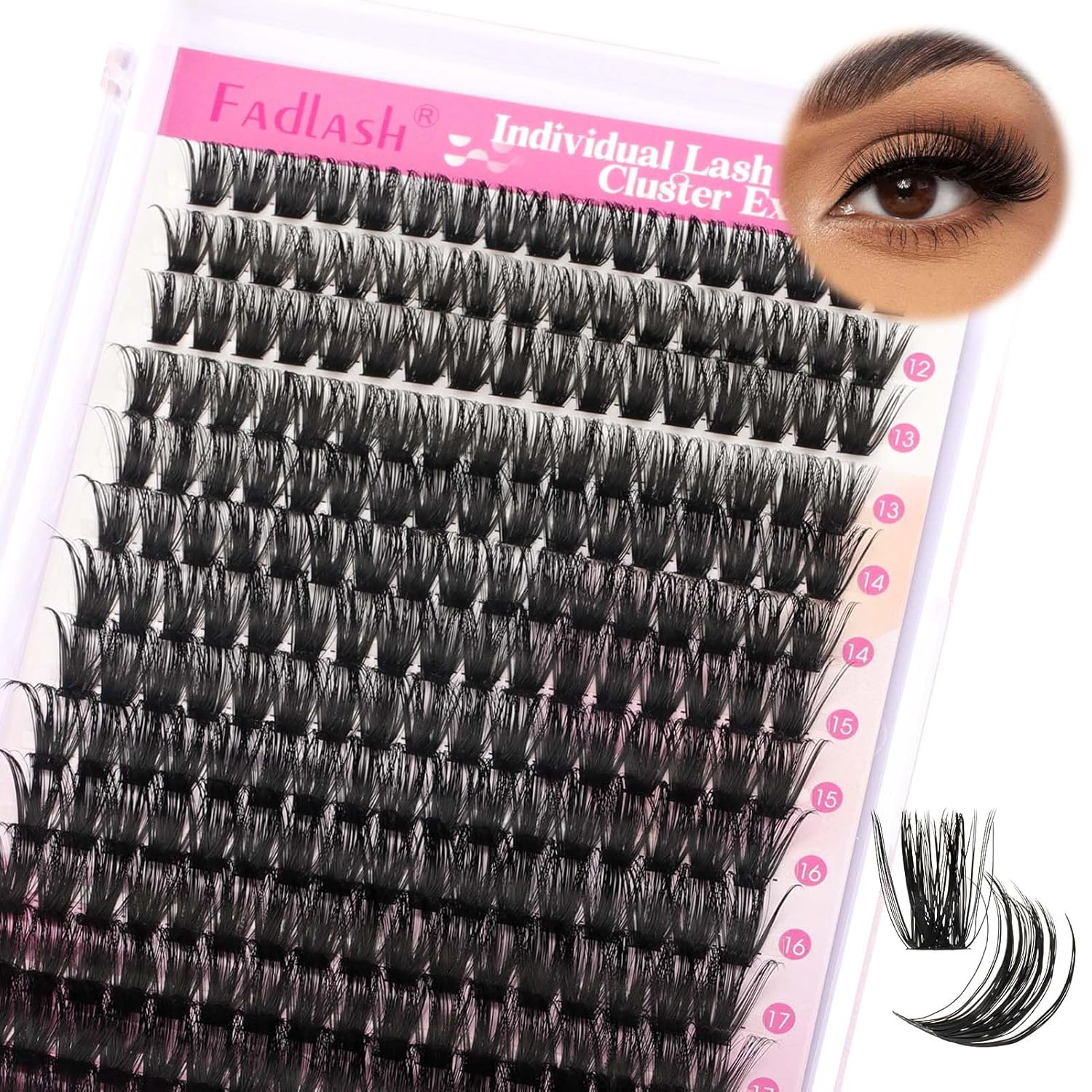 FADLASH Cluster Lashes D Curl Wispy Individual Lashes DIY Eyelash Extension Natural Look Reusable Fluffy Cluster Eyelash Extensions Self Application at Home (80D-0.07D-12-18MIX)