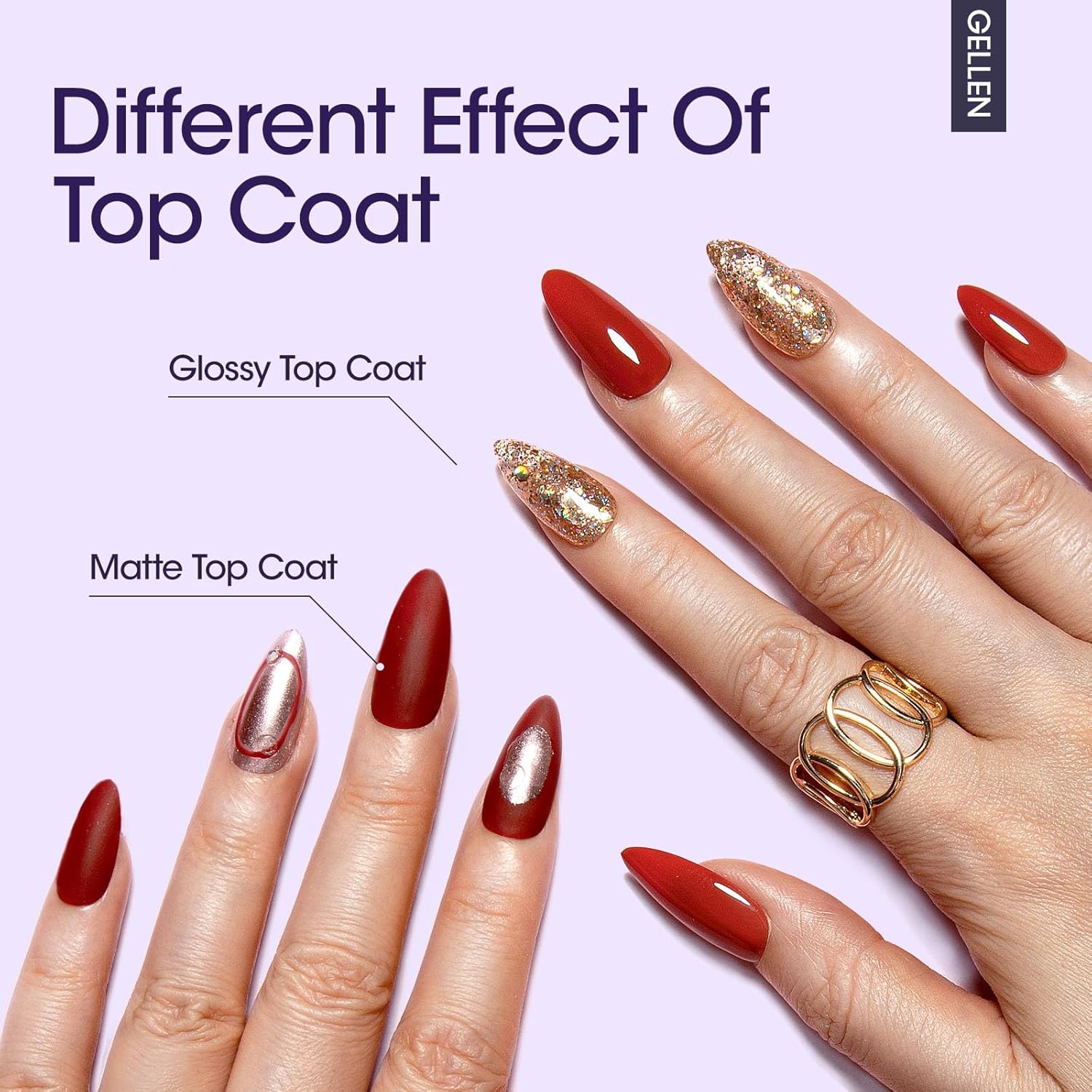 - Superior Gel Base and Top Coat: The base coat nail polish can protect your natural nails, increase the adhesion of nail and color gel. The top coat provides a brilliant mirror-like shine and high-gloss wear while the matte top coat gives an amazing matte finish, avoiding nicks, chips, or smudges. The glossy and matte top coat nail polish have two differ topcoat effect to match your personal preference