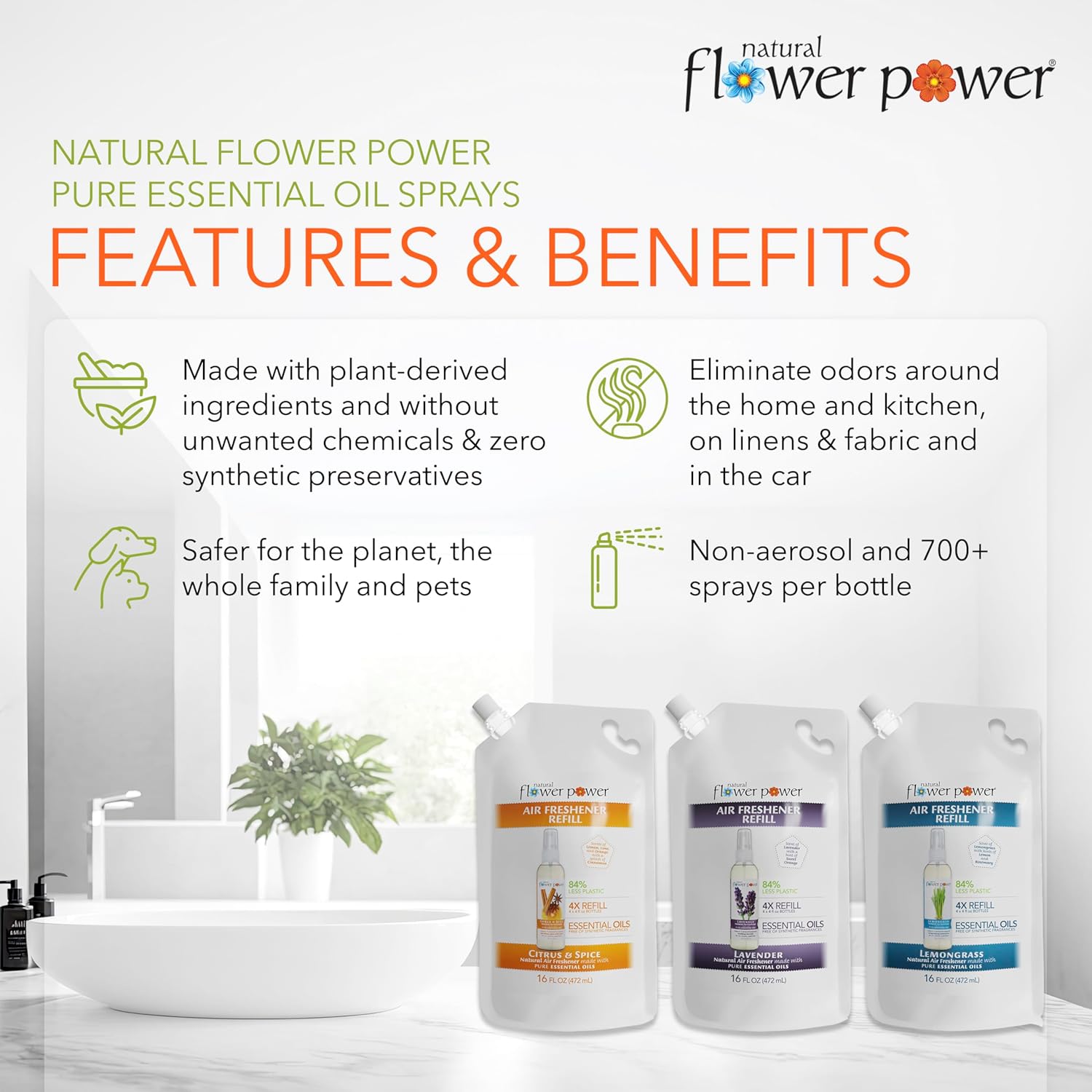 Air Freshener Spray Refills - Odor Eliminator w/Essential Oils - Home, Car & Fabric - Cruelty Free & Vegan - Variety Pack - Citrus & Spice, Lavender, Lemongrass - 3 x 16 fl oz