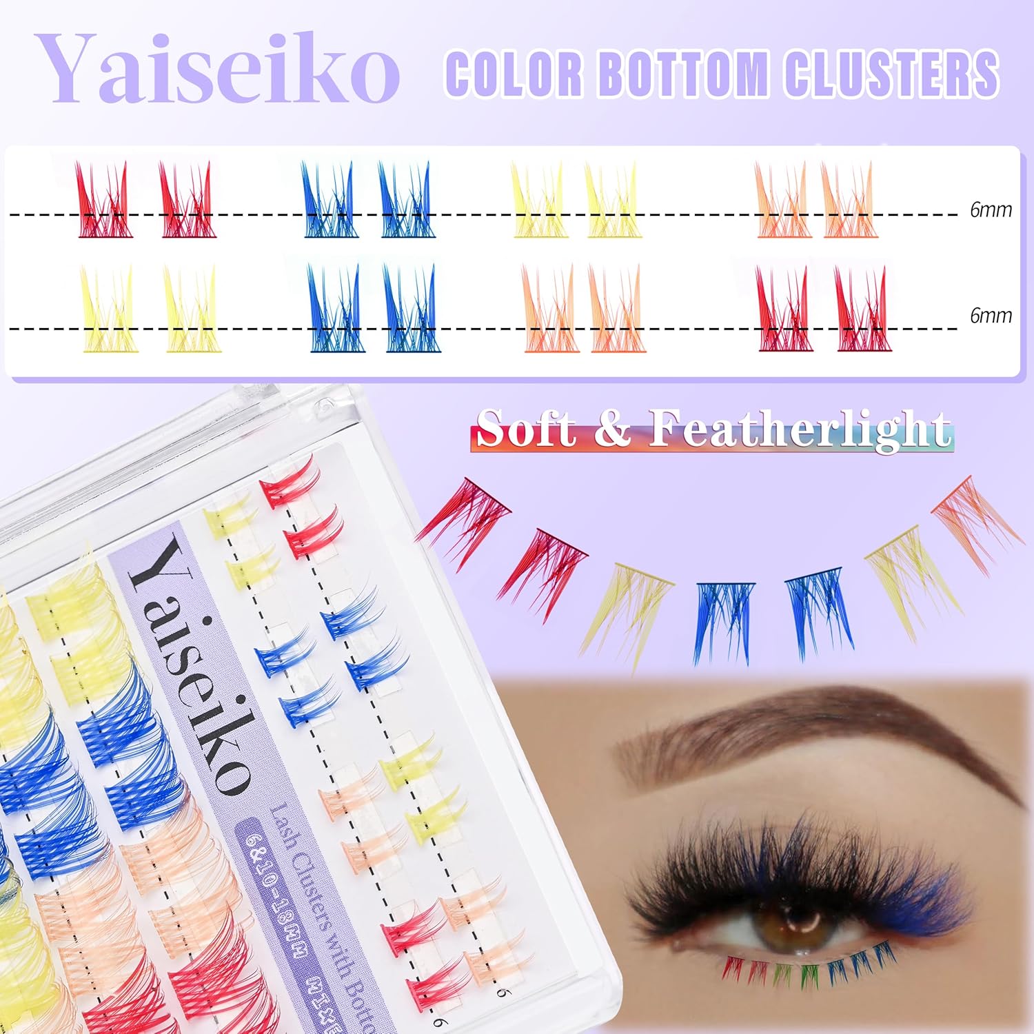 Colored Lash Clusters with Bottom Lashes D Curl 10-18mm Mixed 4 Colors Rainbow DIY Eyelash Extension Colorful Cluster Lashes Pack for Festival Christmas New Year and Cosplay by Yaiseiko