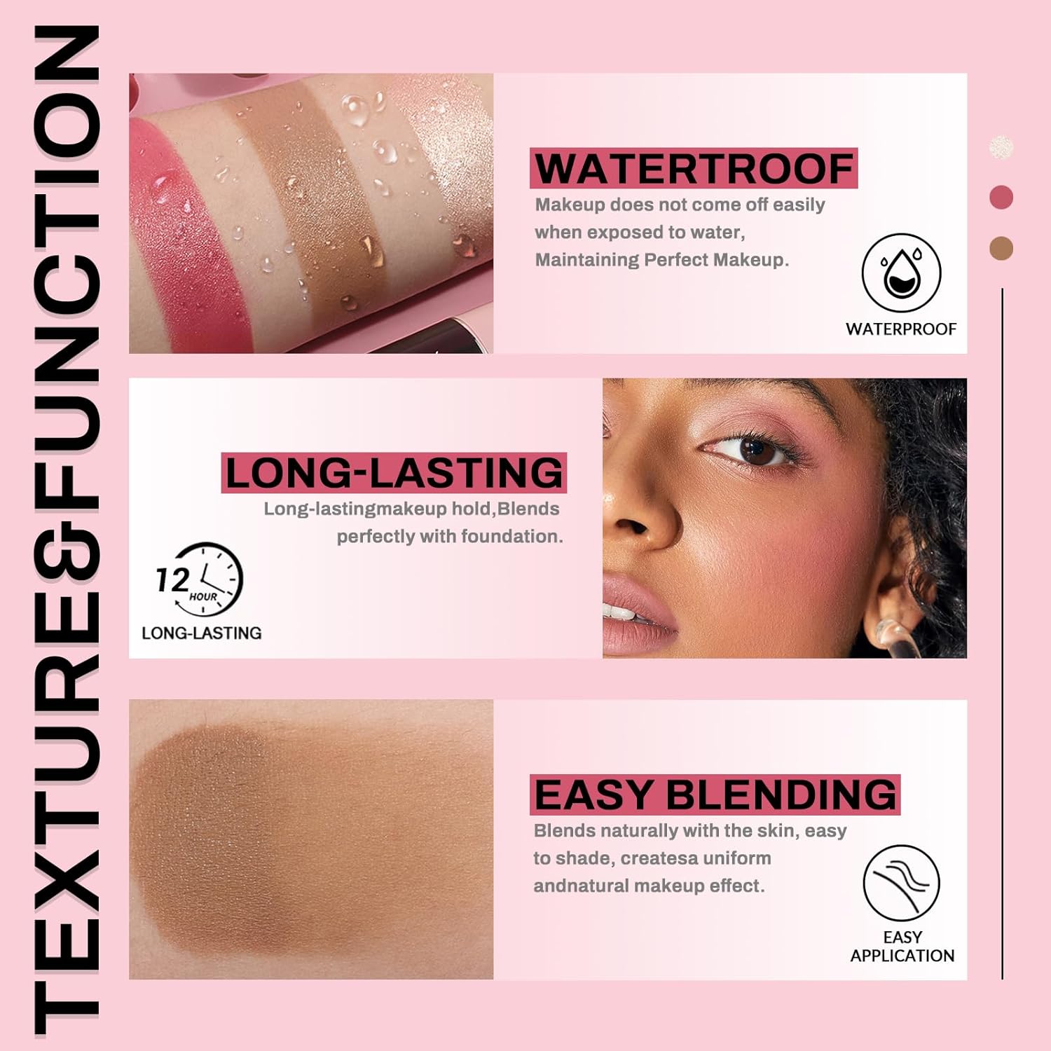 Face Contour Stick Set, Highlighter Stick & Bronzer Stick & Cream Blush Stick for Cheek Lip Tint, Long Lasting Blendable Lightweight Smooth Sculpted Face Stick Natural Dewy Makeup for All Skin