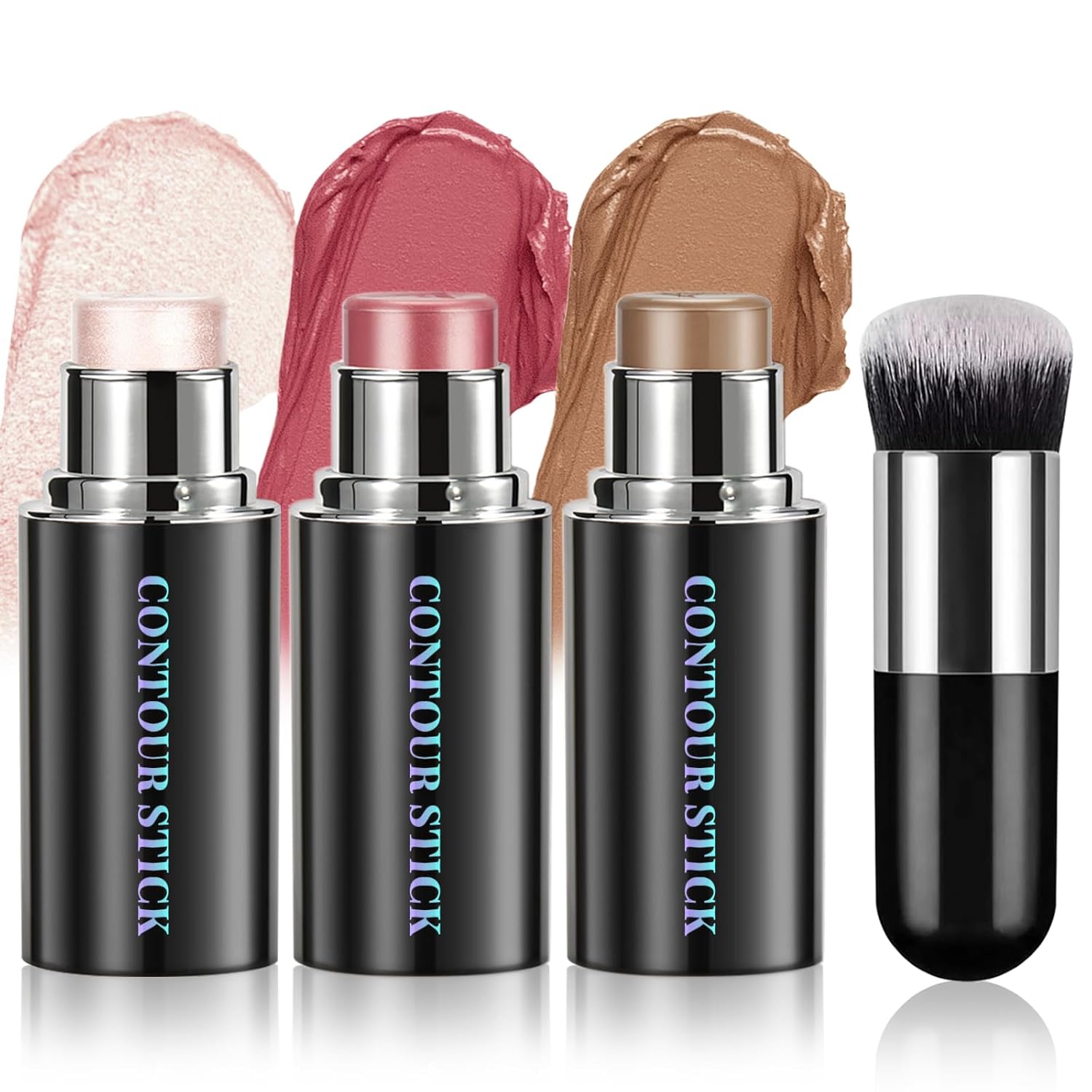 - Sculpt Your Face: The bronzing contour stick and champagne highlighter combination contours and shapes the face. The blush stick enhances the skin tone for a soft dewy look. In just a few minutes, this set of contour sticks creates a warm, healthy, rosy, natural-looking complexion
