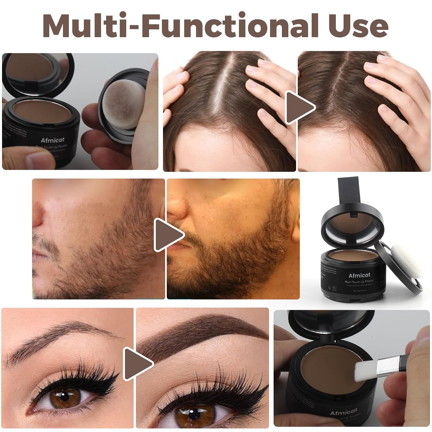 - MULTIFUNCTIONAL: Not just limited to hair, root cover up powder is also great for filling in bald spots, giving you a fuller and more defined look.It can also be used in beard dye for men, especially for shaping and defining the beard line.