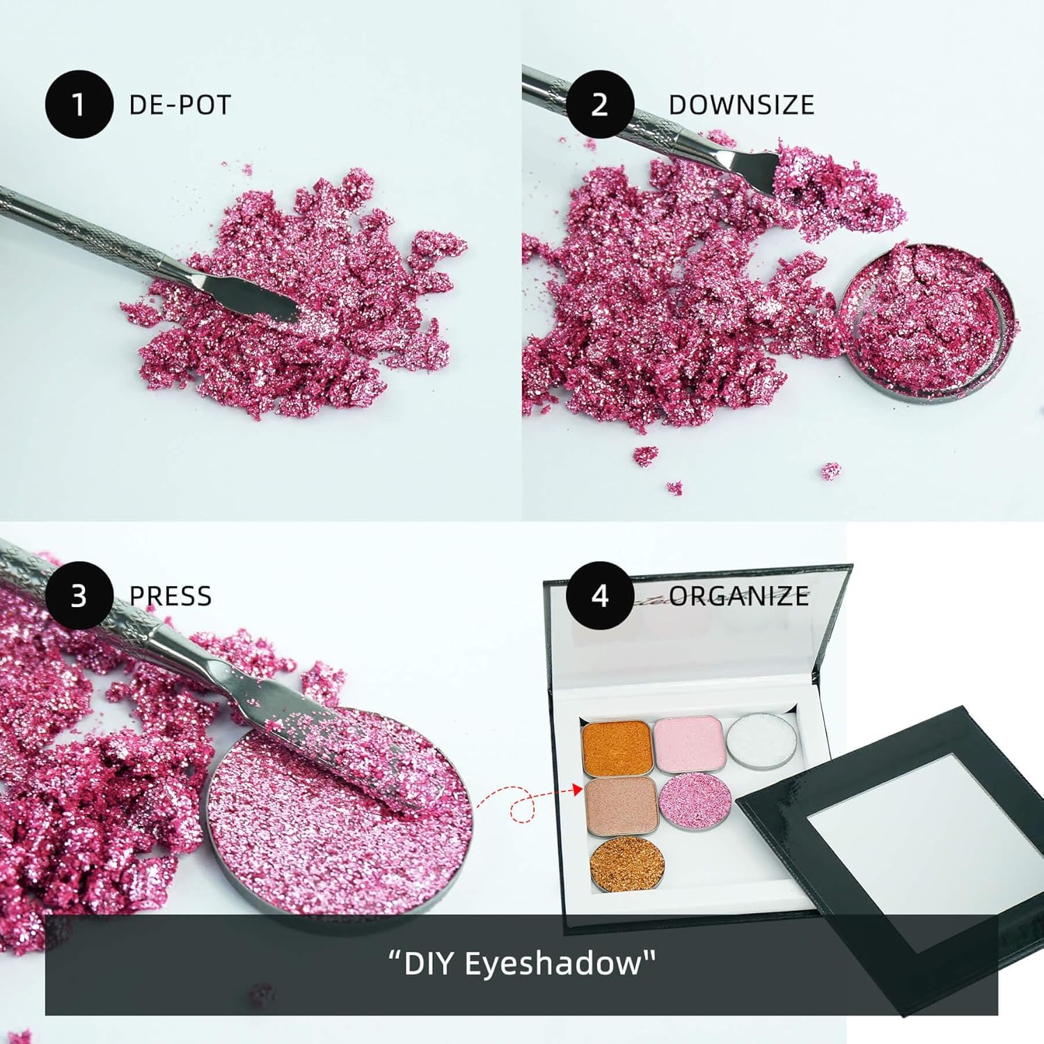 - 𝐈𝐦𝐩𝐨𝐫𝐭𝐚𝐧𝐭 :Makeup not included. Empty palette fits pans less than 0.24 inches deep and under 3.19 inches wide/long. Please check size before purchasing, Each Item Weighs 5 oz.
