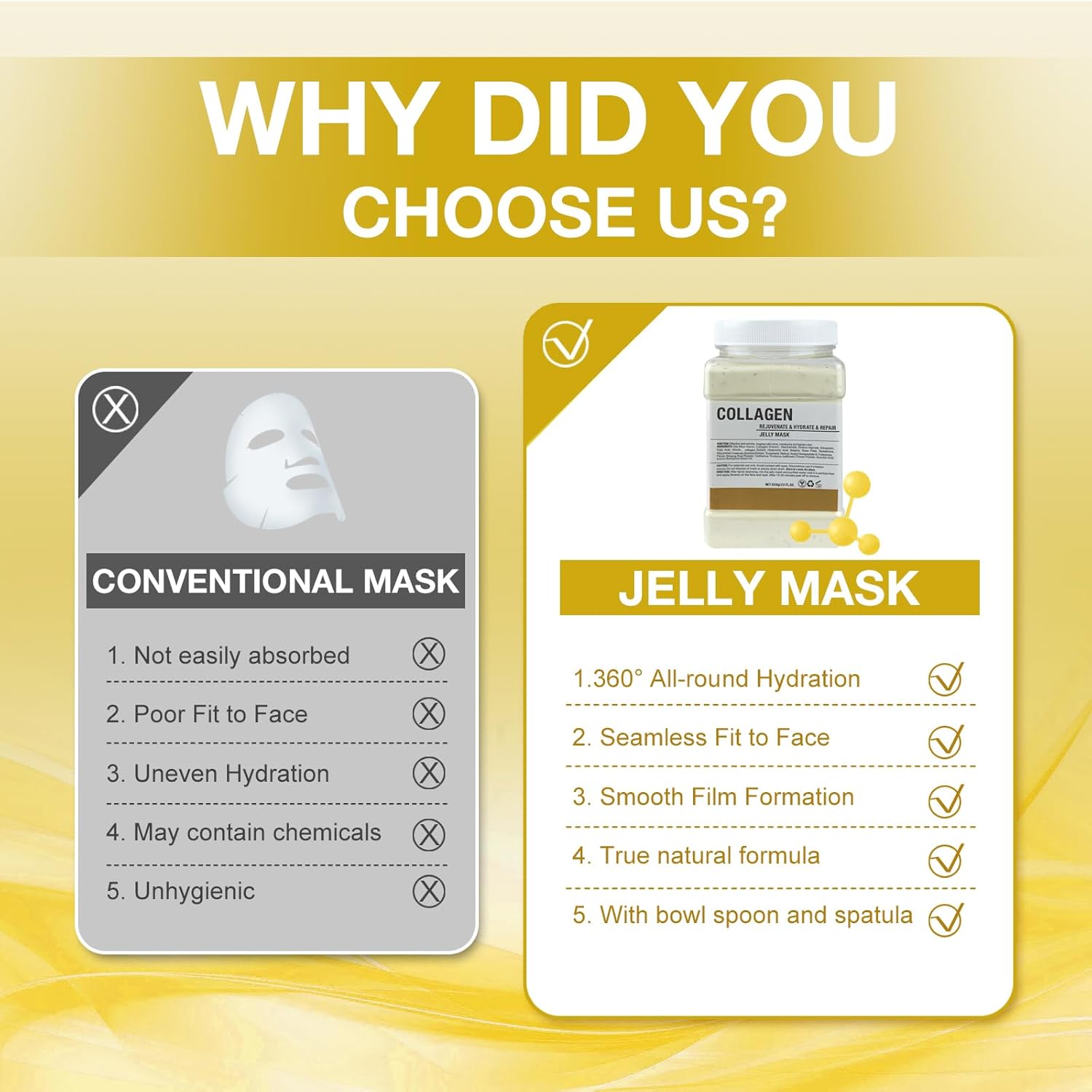 - 【DEEP NOURISH EVERY INCH OF YOUR SKIN】 Unlike regular paper masks, this jelly face mask can be applied to the entire face and any part of your skin including legs, armpits, and vajacial, giving the skin a closed protective layer. The closing layer of this hydro jelly mask traps moisture, allowing the collagen essence and nutrients of this hydro jelly masks for facials at the bottom to fully nourish every inch of skin an inch of skin.